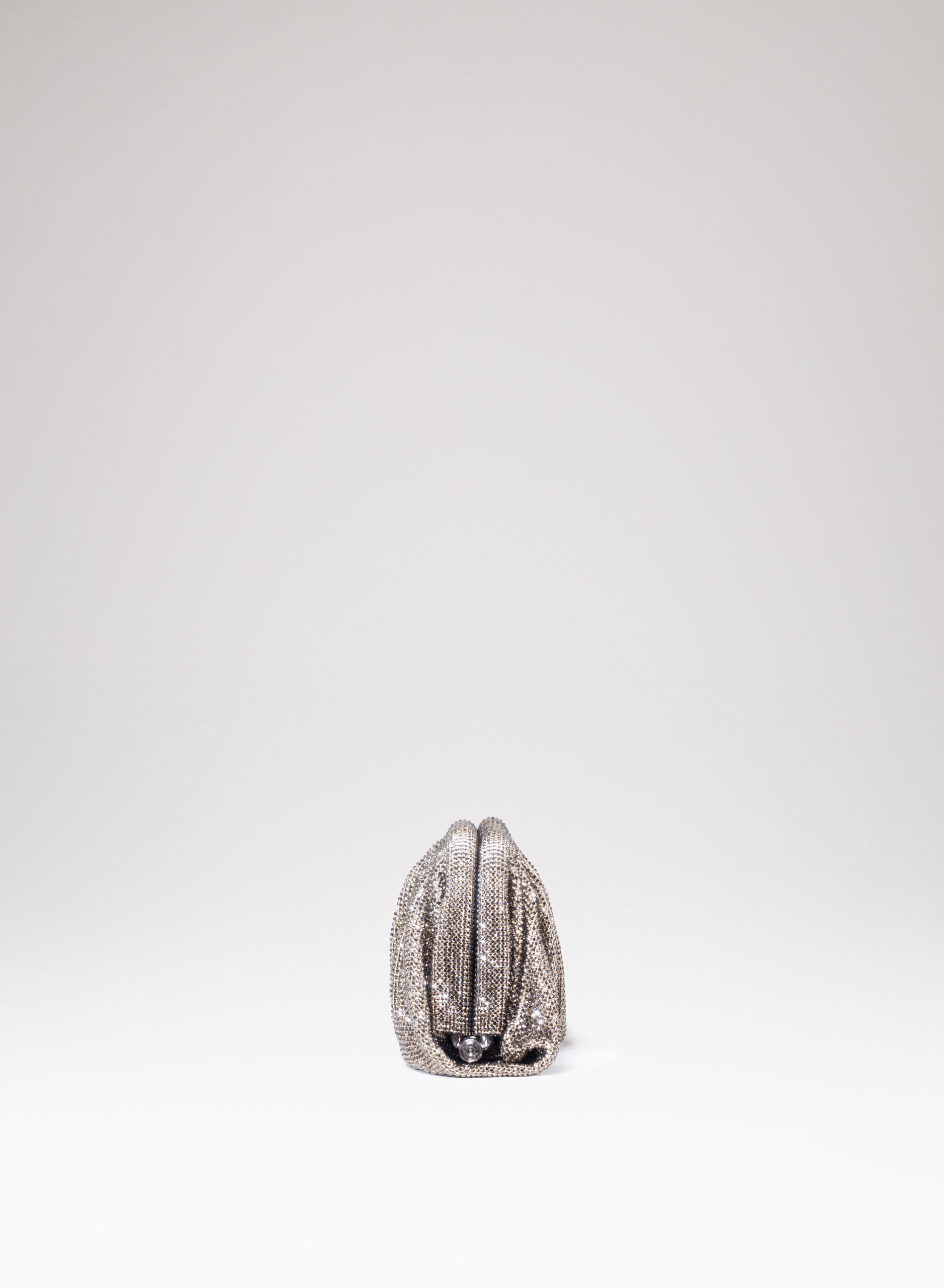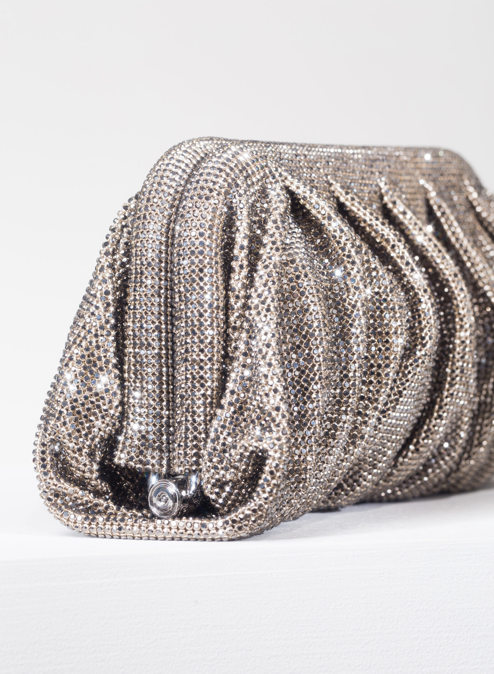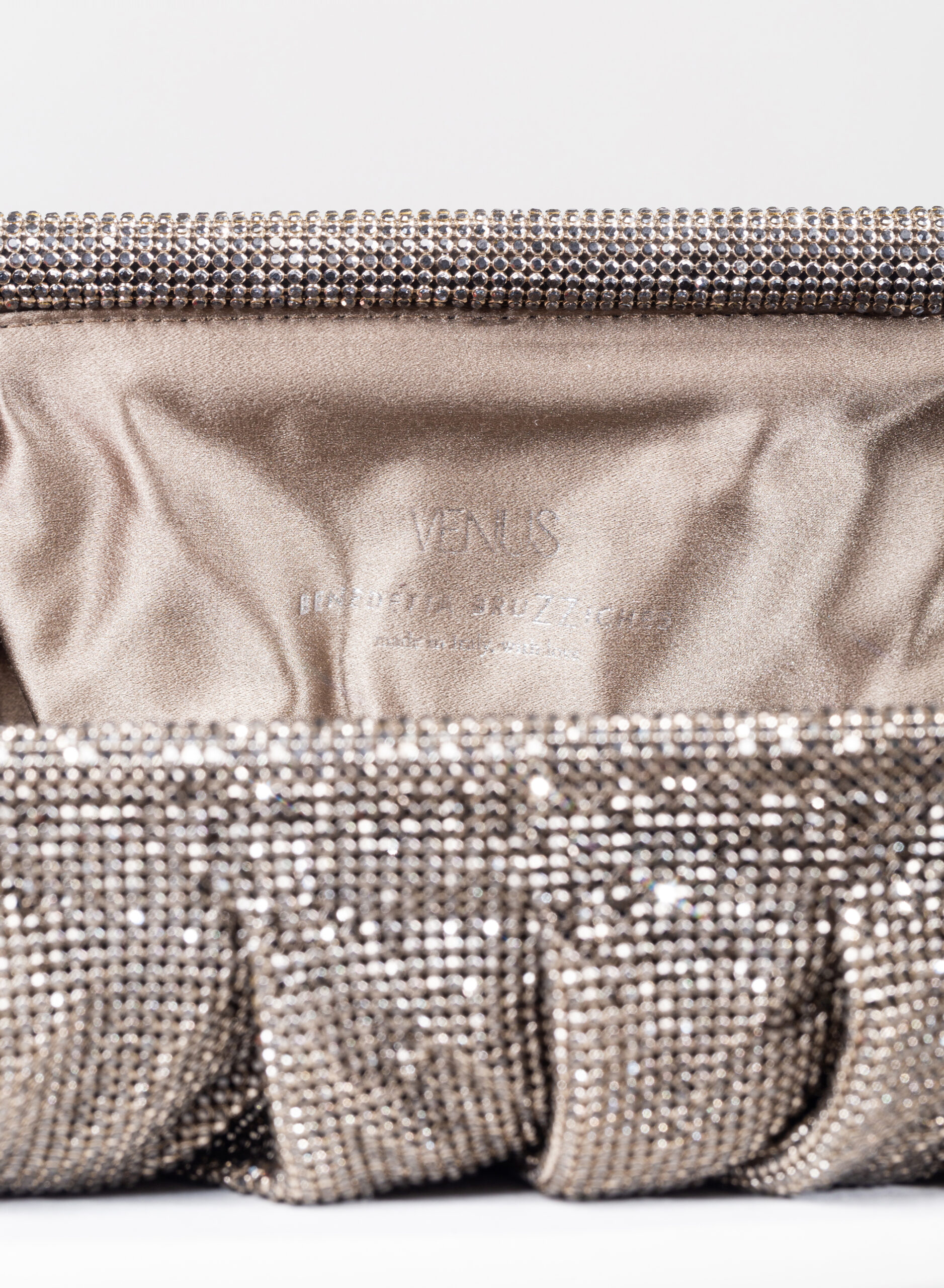 Accolgo l’amore che mi attraversa come un’onda che rotola, si frange sulla roccia e spuma. Come un acquazzone che fuma, ribolle e feconda la terra arsa. Come un profumo che sale dal mare, spande e satura l’aria d’intorno. Così il mio corpo rinasce in Venere. Questa pochette è un omaggio alla dea dell’Amore e della Bellezza e al magico momento in cui ogni donna, che ama ed è riamata, si trasforma. Da mortale diventa dea in una perfetta personificazione di Venere. Dalle forme morbide e ondulate, Venus è realizzata con una rete di scintillanti cristalli cucita a mano con la…
