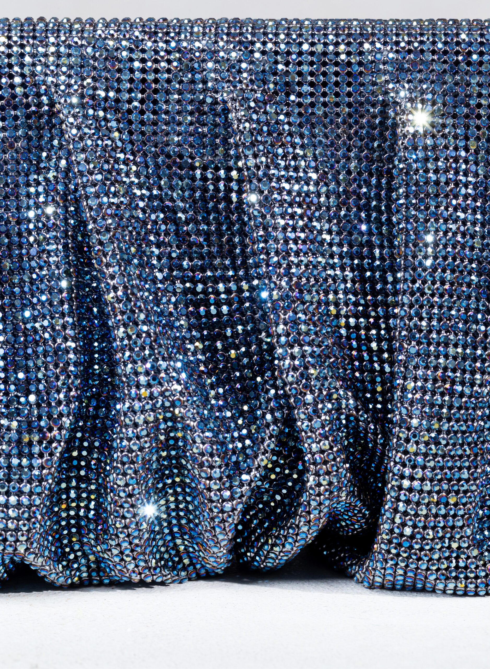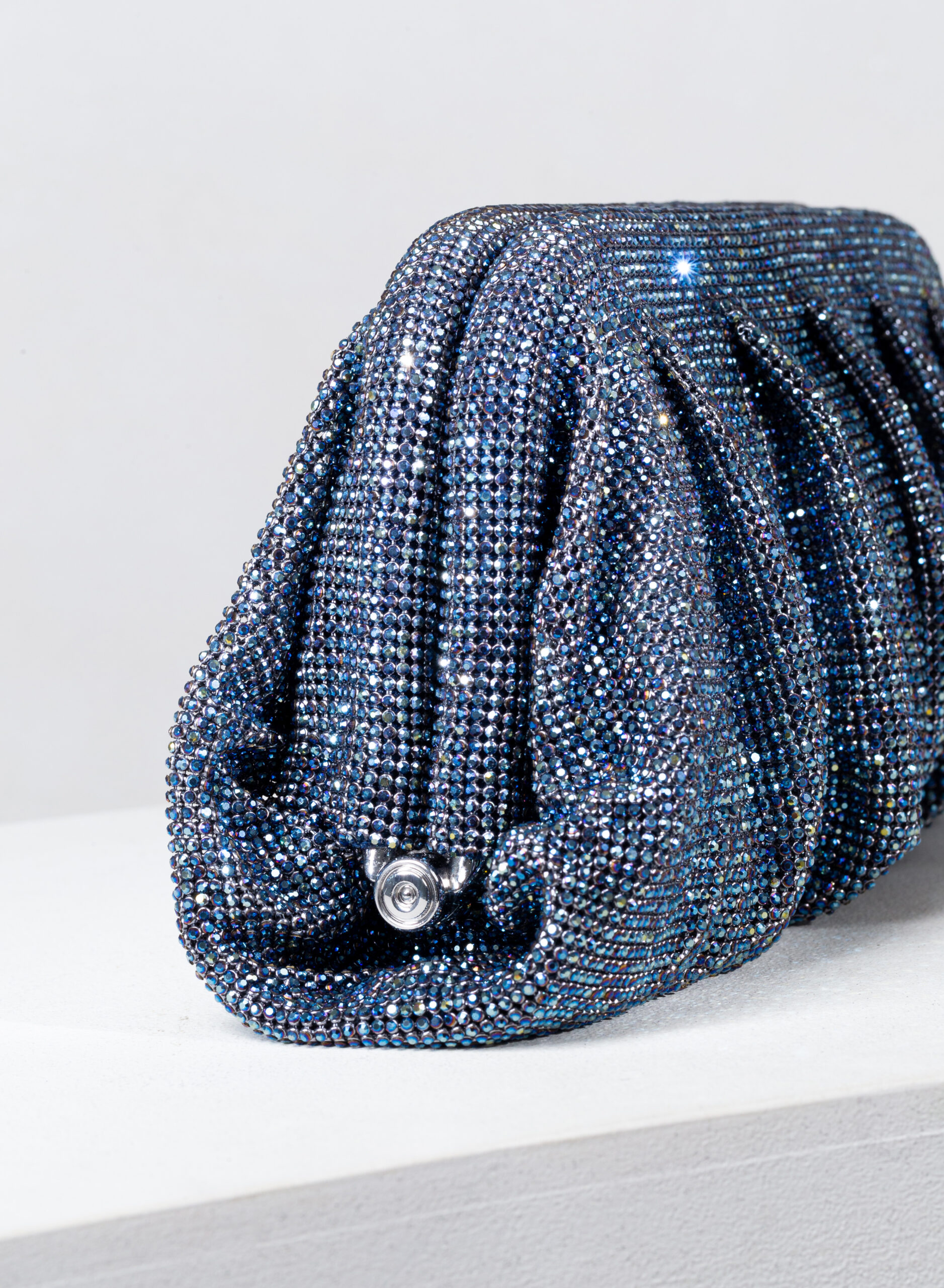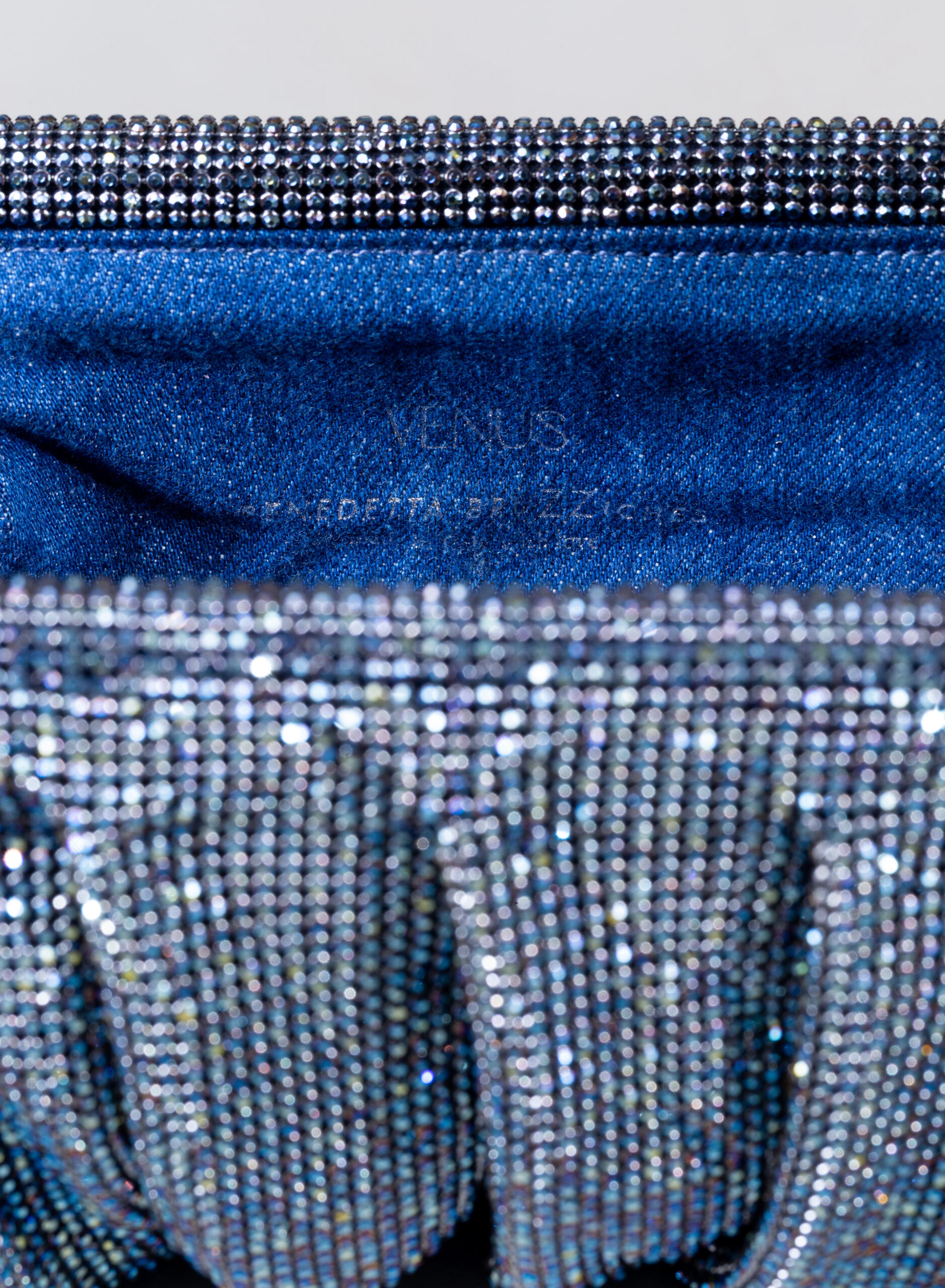 Accolgo l’amore che mi attraversa come un’onda che rotola, si frange sulla roccia e spuma. Come un acquazzone che fuma, ribolle e feconda la terra arsa. Come un profumo che sale dal mare, spande e satura l’aria d’intorno. Così il mio corpo rinasce in Venere. Questa pochette è un omaggio alla dea dell’Amore e della Bellezza e al magico momento in cui ogni donna, che ama ed è riamata, si trasforma. Da mortale diventa dea in una perfetta personificazione di Venere. Dalle forme morbide e ondulate, Venus è realizzata con una rete di scintillanti cristalli cucita a mano con la…