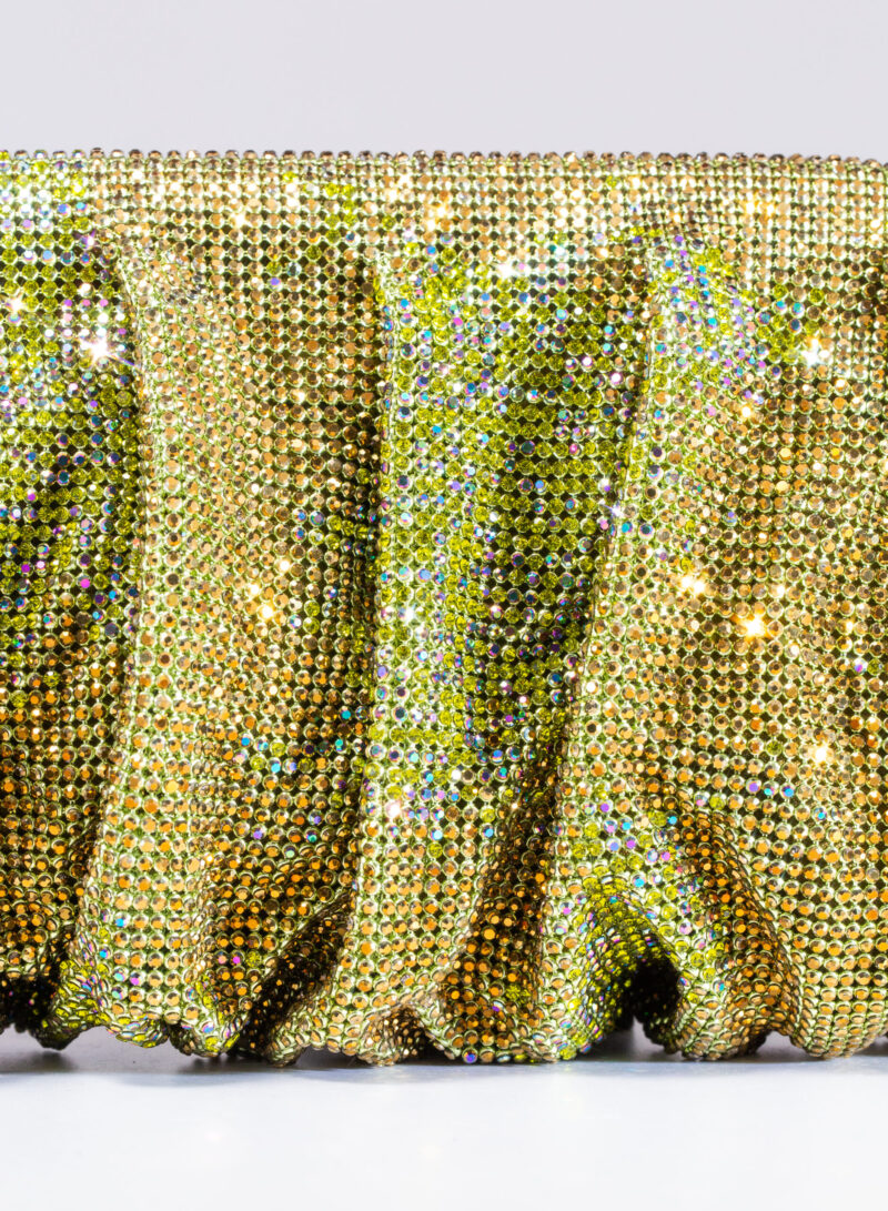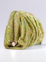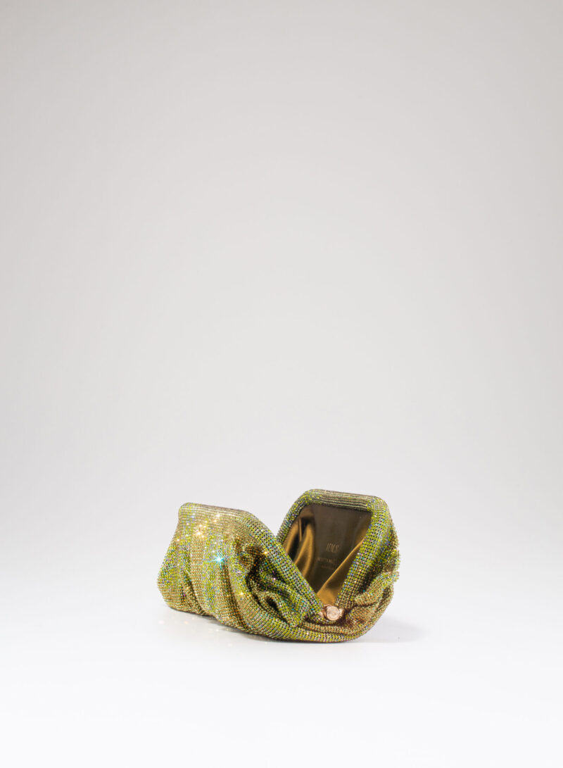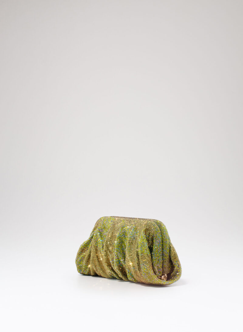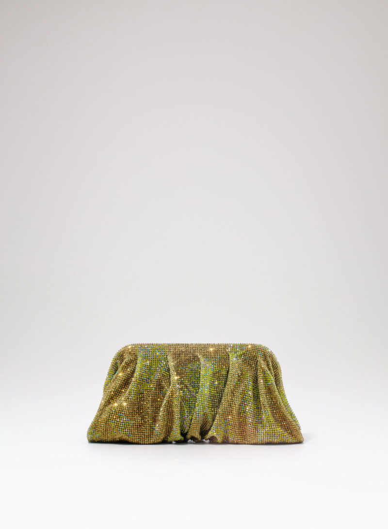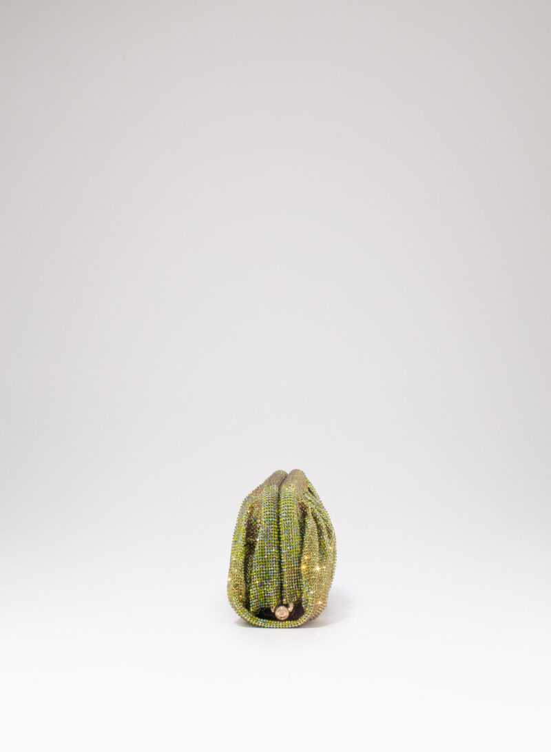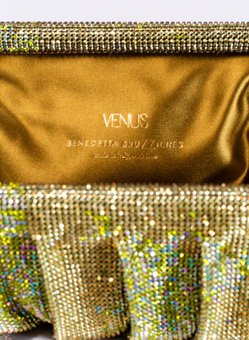 Dalle forme morbide e ondulate, Venus è realizzata con una rete di scintillanti cristalli cucita a mano con la stessa attenzione che si dedicherebbe a un gioiello. Al suo interno, una pochette in raso di seta è pronta ad accogliere il necessario per una serata fuori.