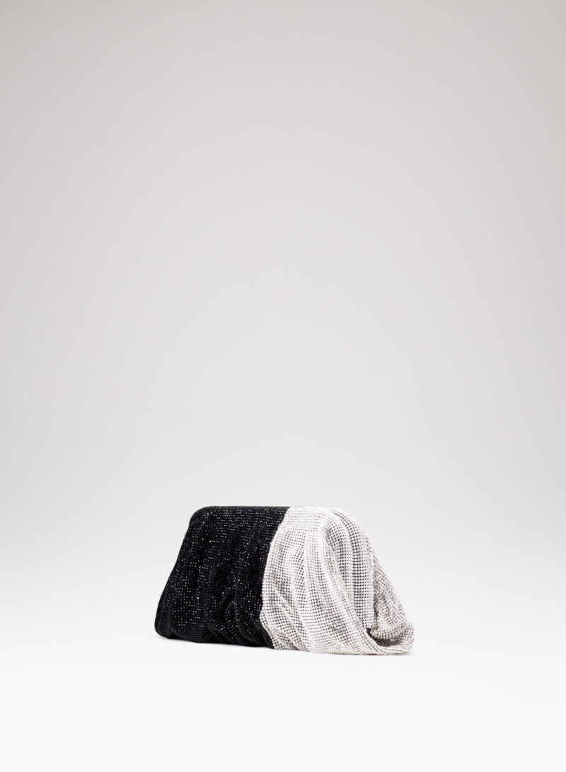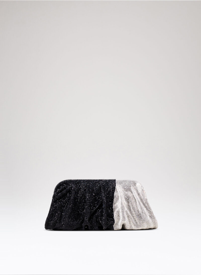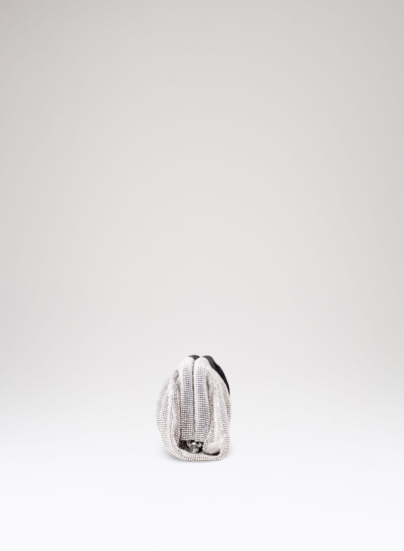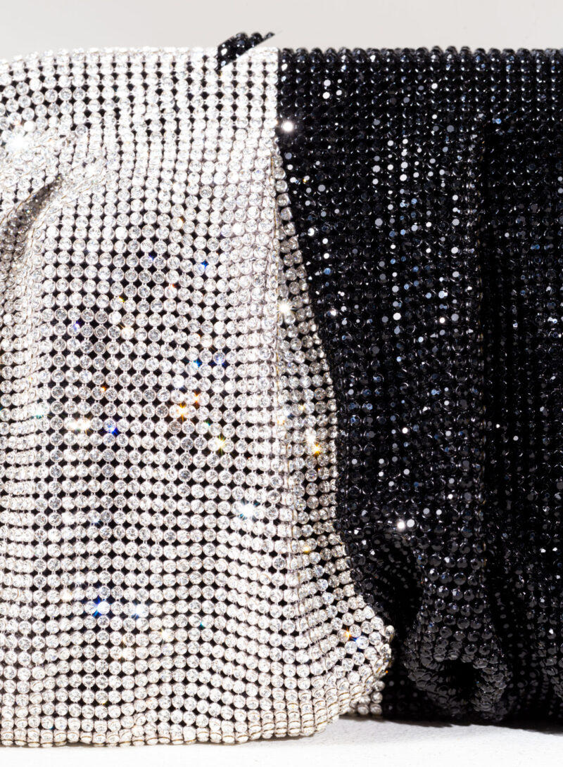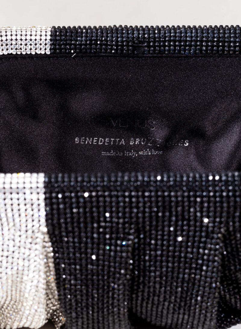 Dalle forme morbide e ondulate, Venus è realizzata con una rete di scintillanti cristalli cucita a mano con la stessa attenzione che si dedicherebbe a un gioiello. Al suo interno, una pochette in raso di seta è pronta ad accogliere il necessario per una serata fuori.