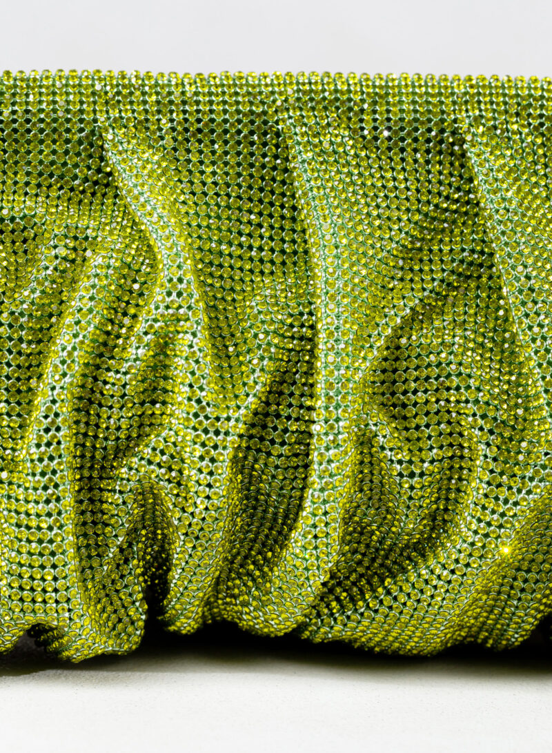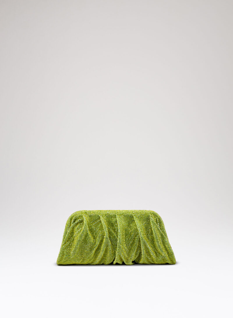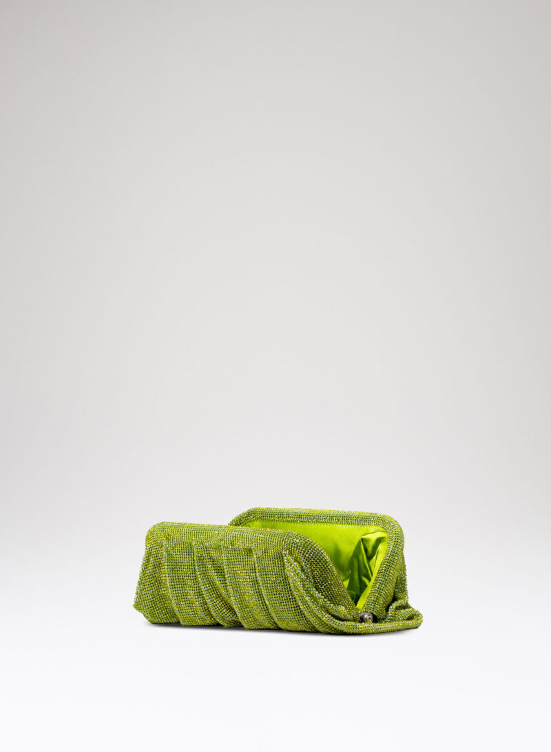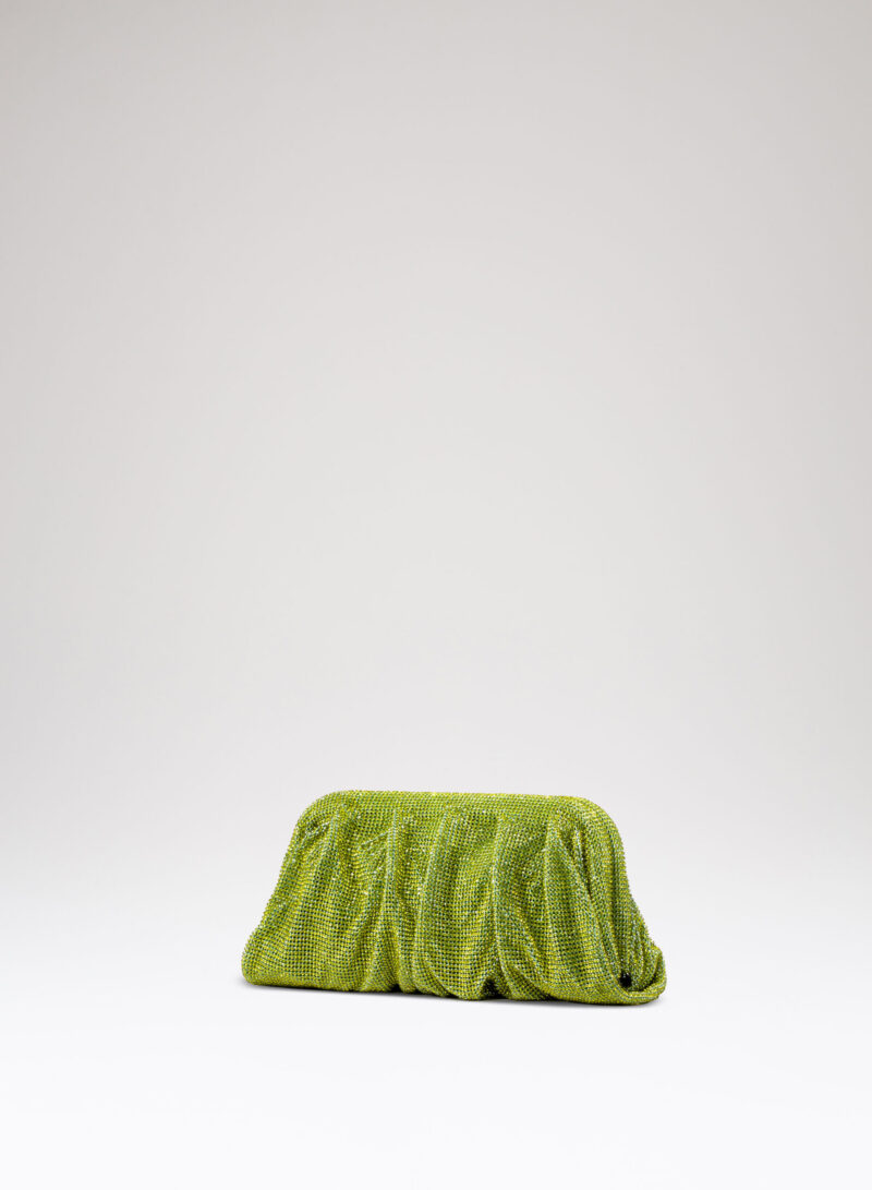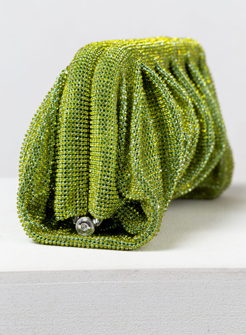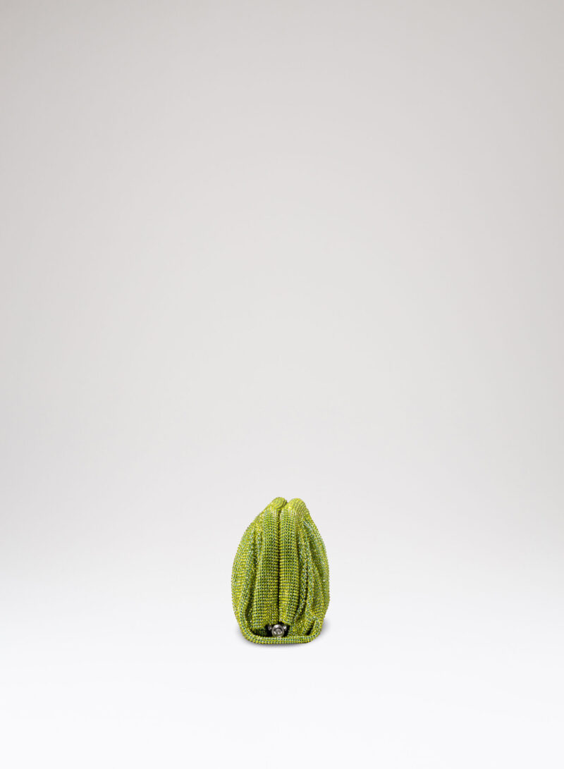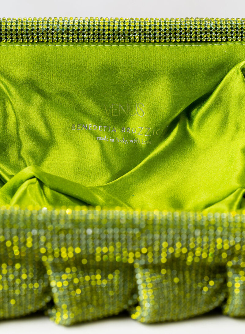 Dalle forme morbide e ondulate, Venus è realizzata con una rete di scintillanti cristalli cucita a mano con la stessa attenzione che si dedicherebbe a un gioiello. Al suo interno, una pochette in raso di seta è pronta ad accogliere il necessario per una serata fuori.
