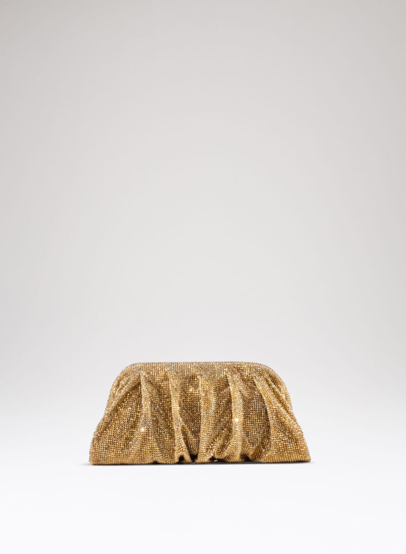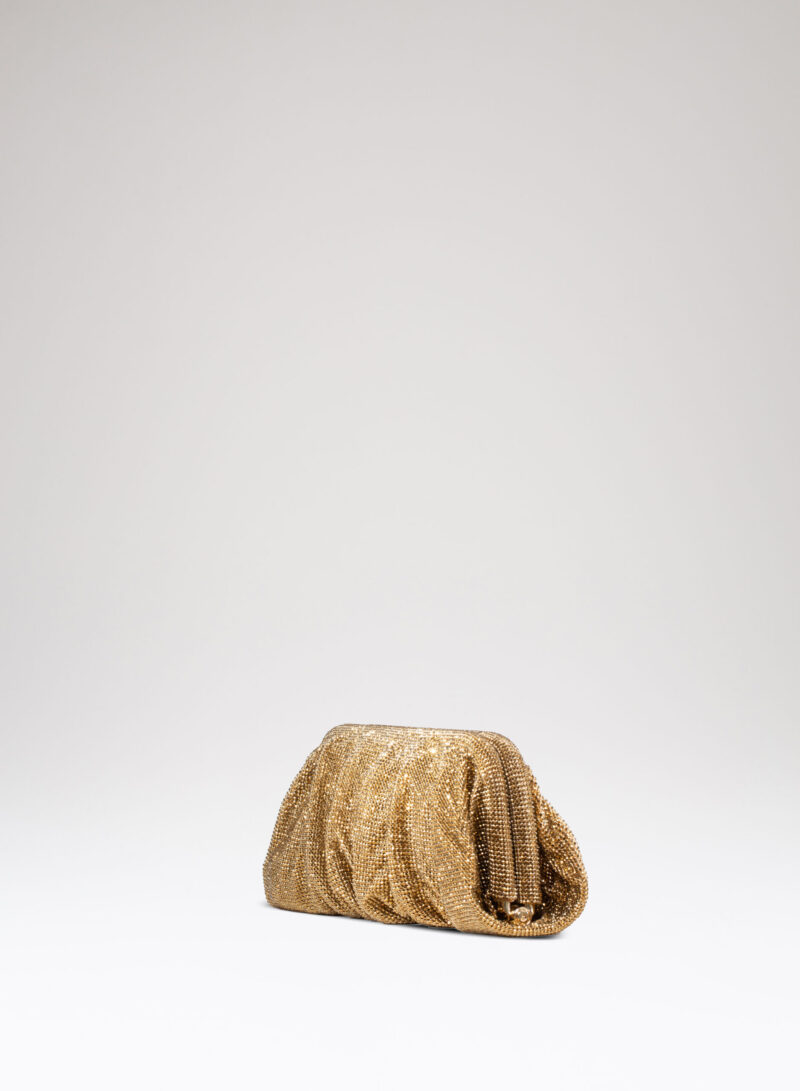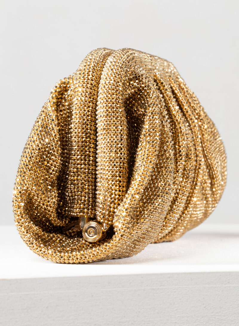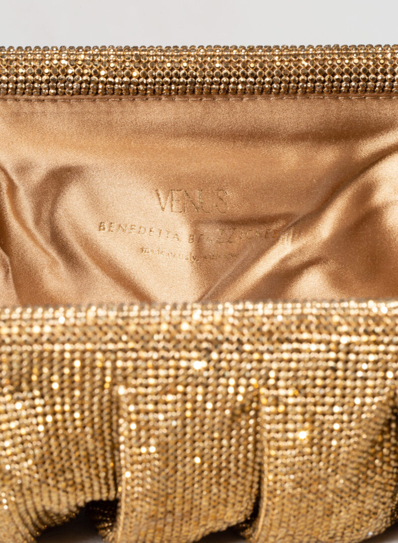 Dalle forme morbide e ondulate, Venus è realizzata con una rete di scintillanti cristalli cucita a mano con la stessa attenzione che si dedicherebbe a un gioiello. Al suo interno, una pochette in raso di seta è pronta ad accogliere il necessario per una serata fuori.