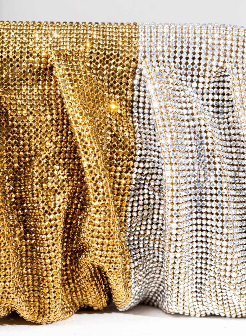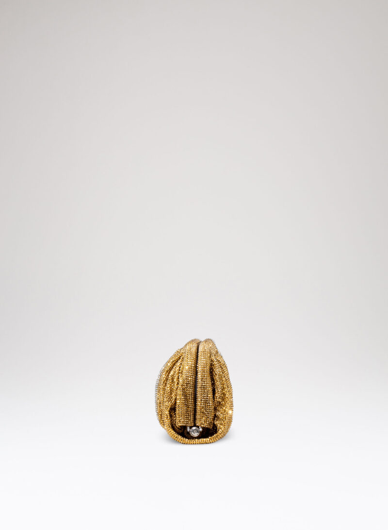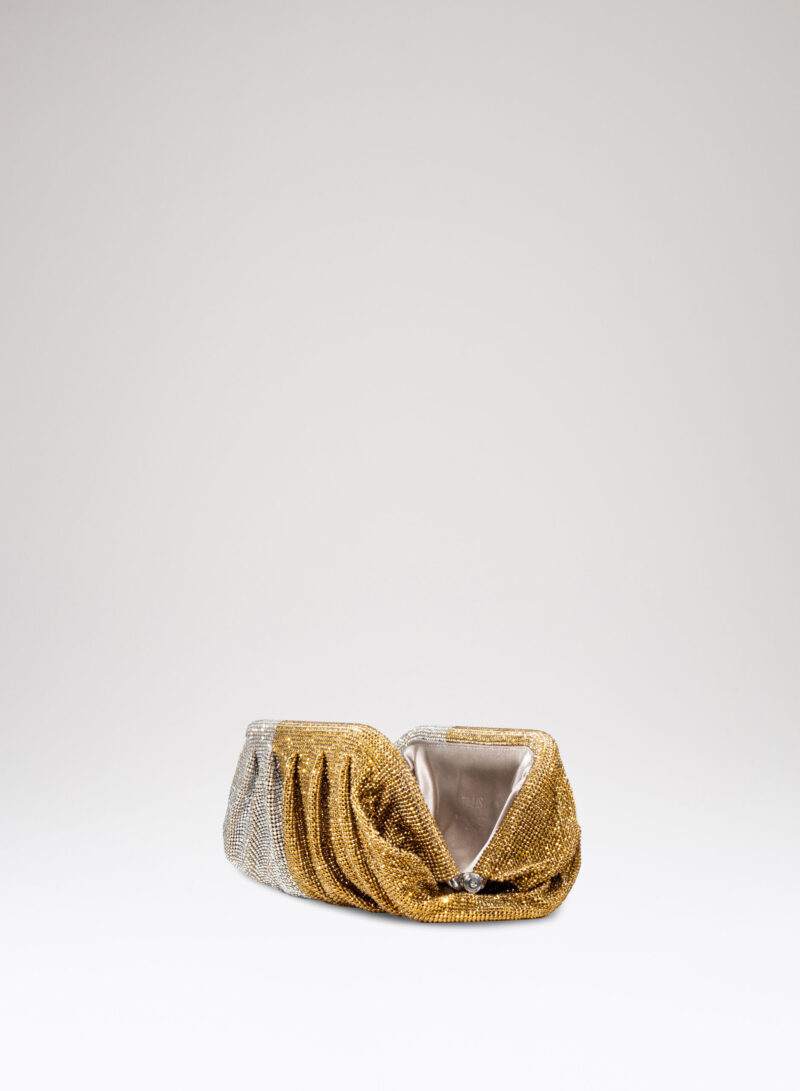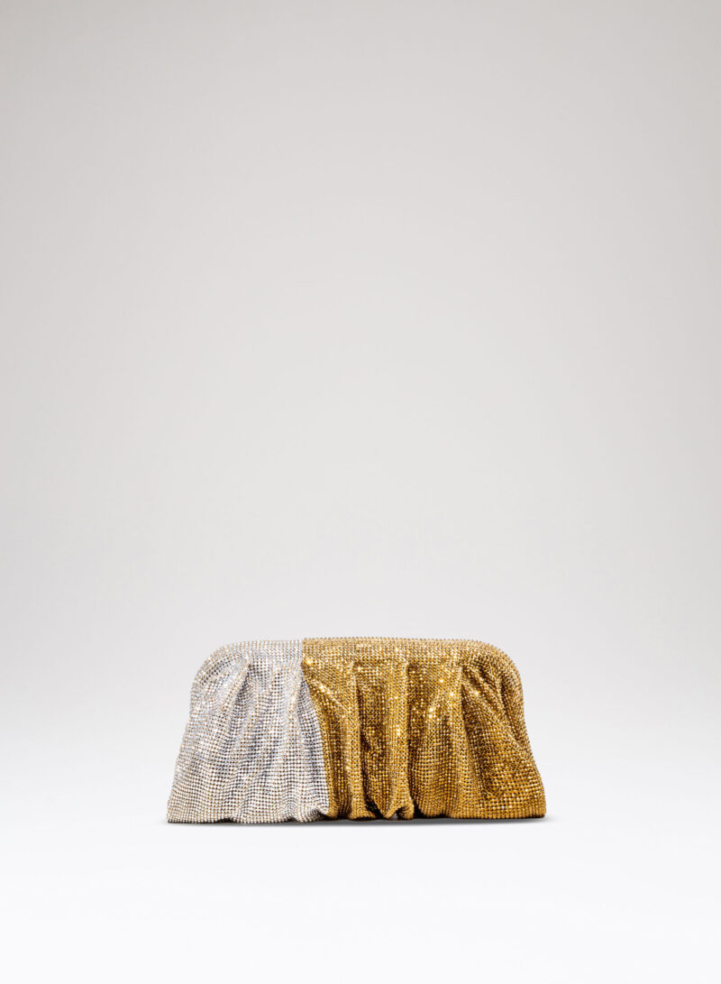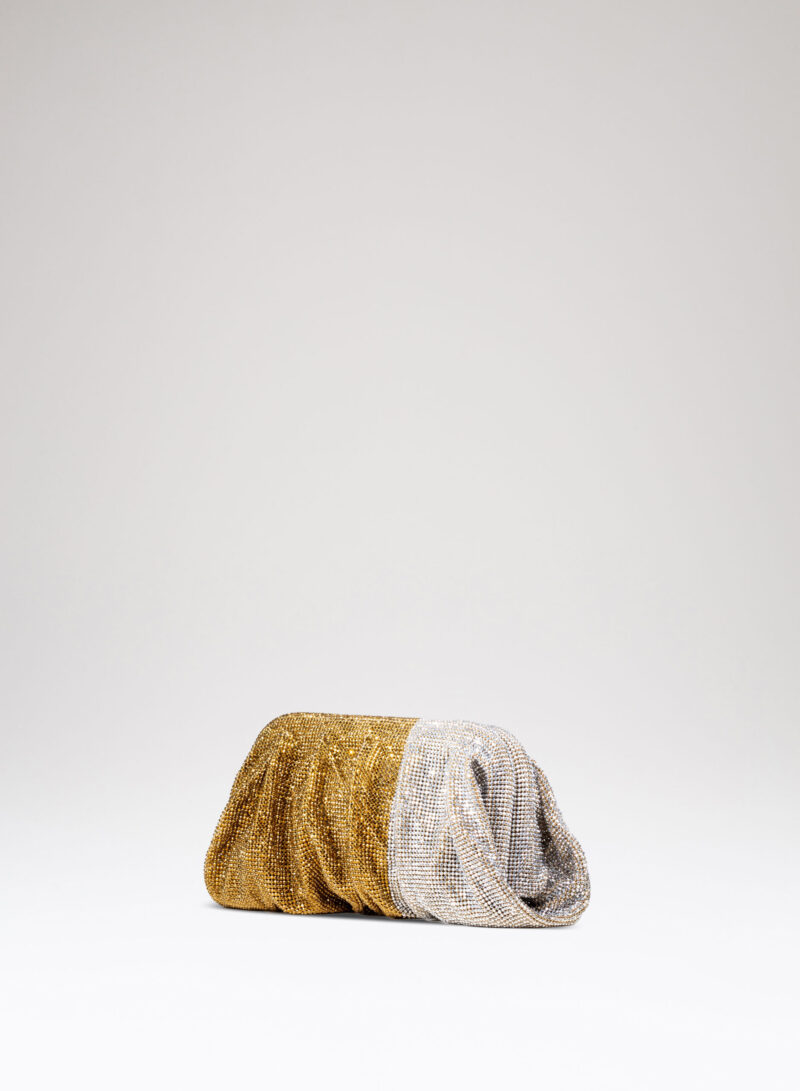 Dalle forme morbide e ondulate, Venus è realizzata con una rete di scintillanti cristalli cucita a mano con la stessa attenzione che si dedicherebbe a un gioiello. Al suo interno, una pochette in raso di seta è pronta ad accogliere il necessario per una serata fuori.