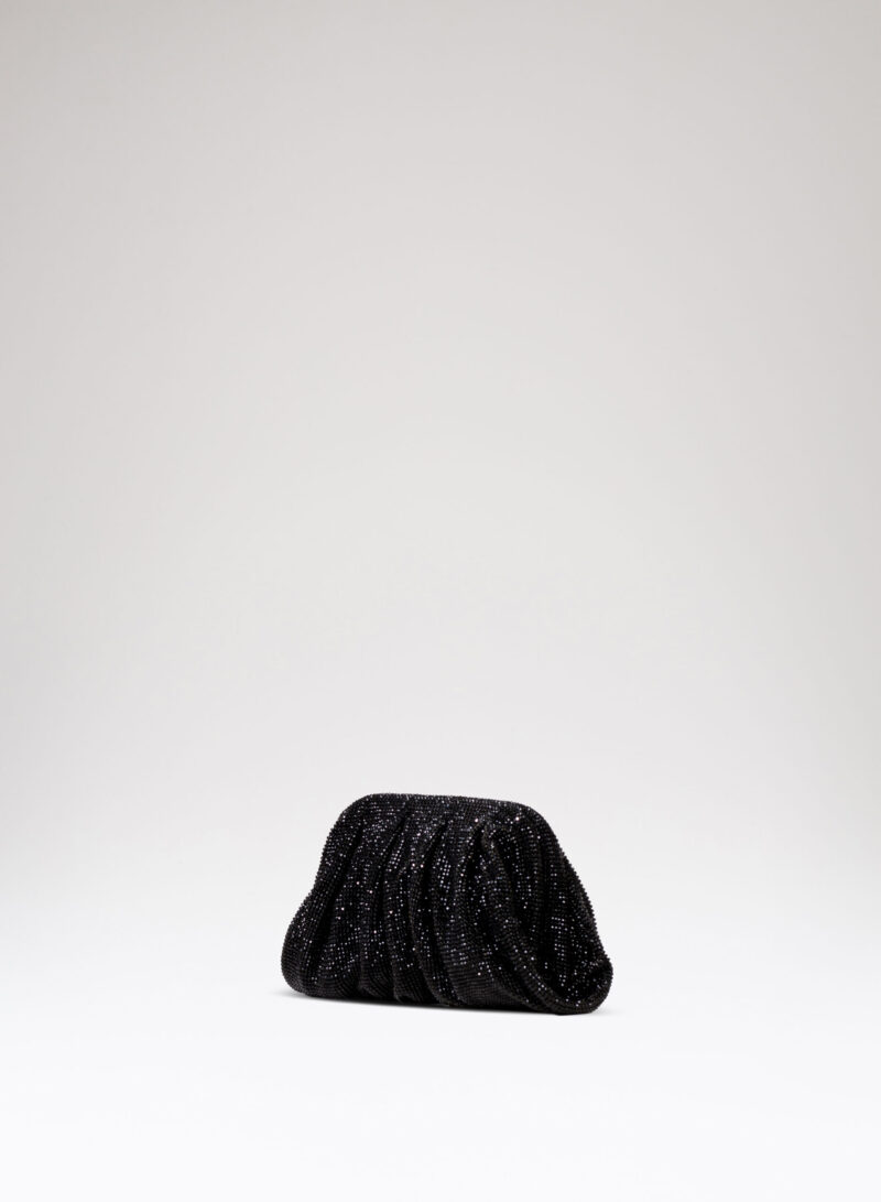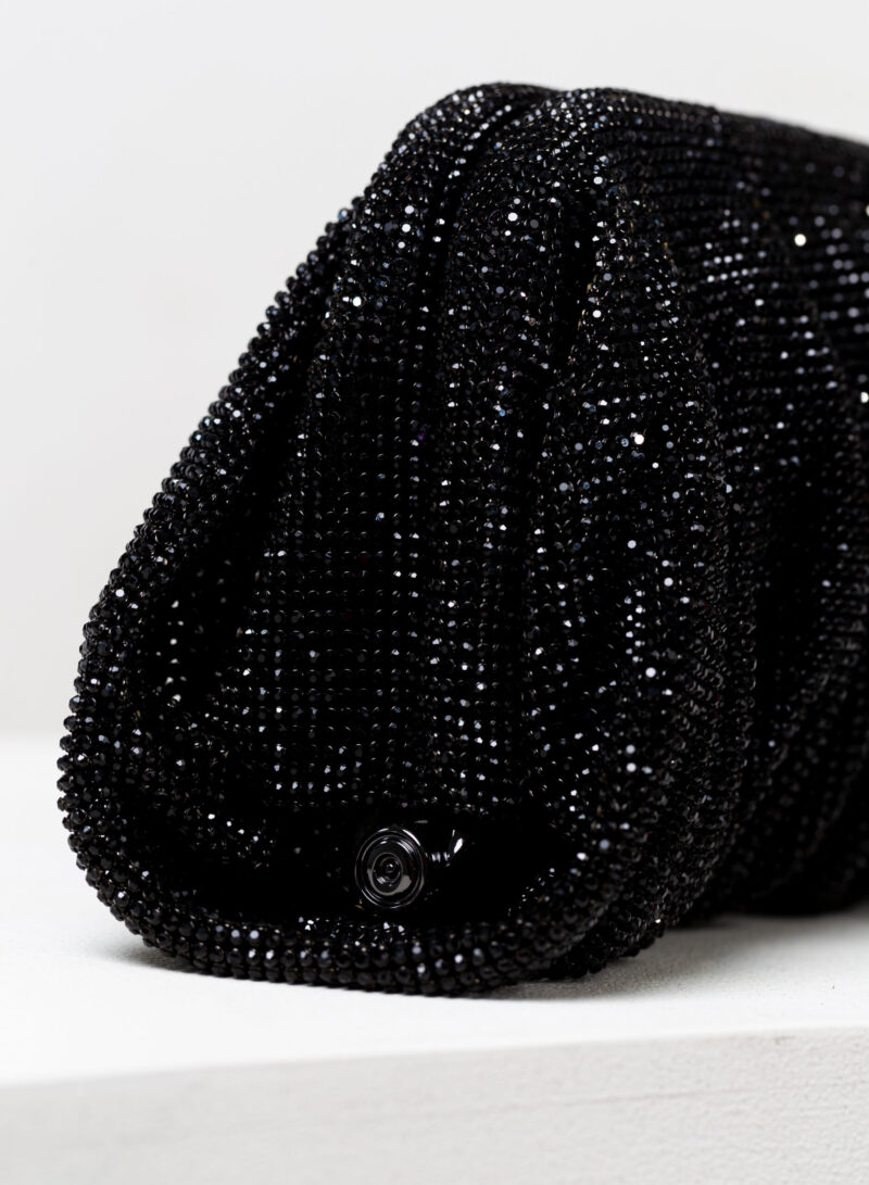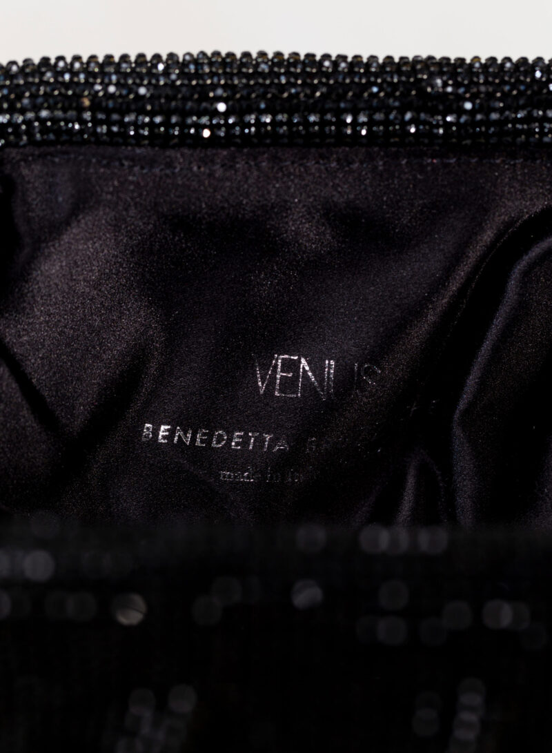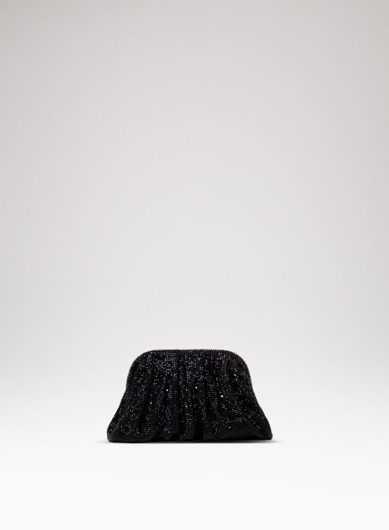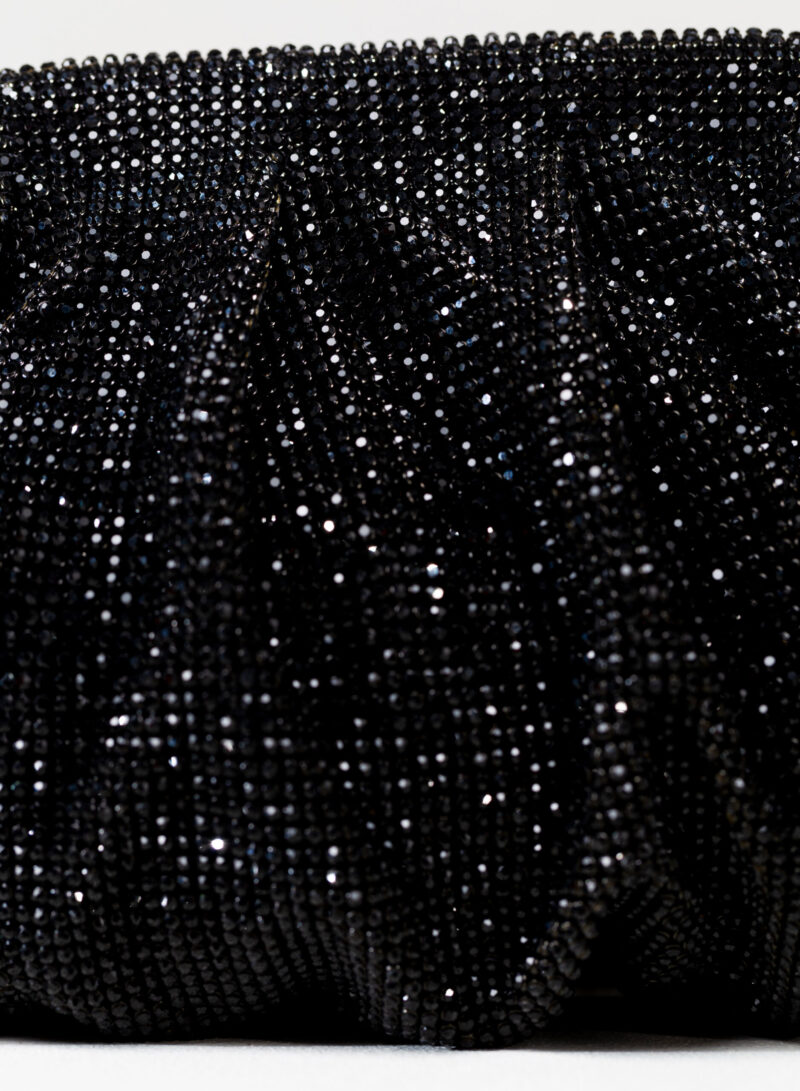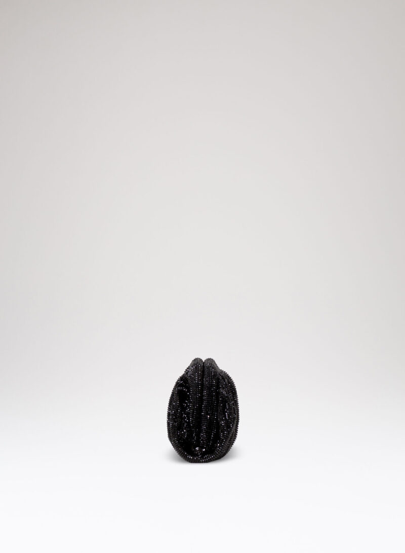 Dalle forme morbide e ondulate, Venus è realizzata con una rete di scintillanti cristalli cucita a mano con la stessa attenzione che si dedicherebbe a un gioiello. Al suo interno, una pochette in raso di seta è pronta ad accogliere il necessario per una serata fuori.