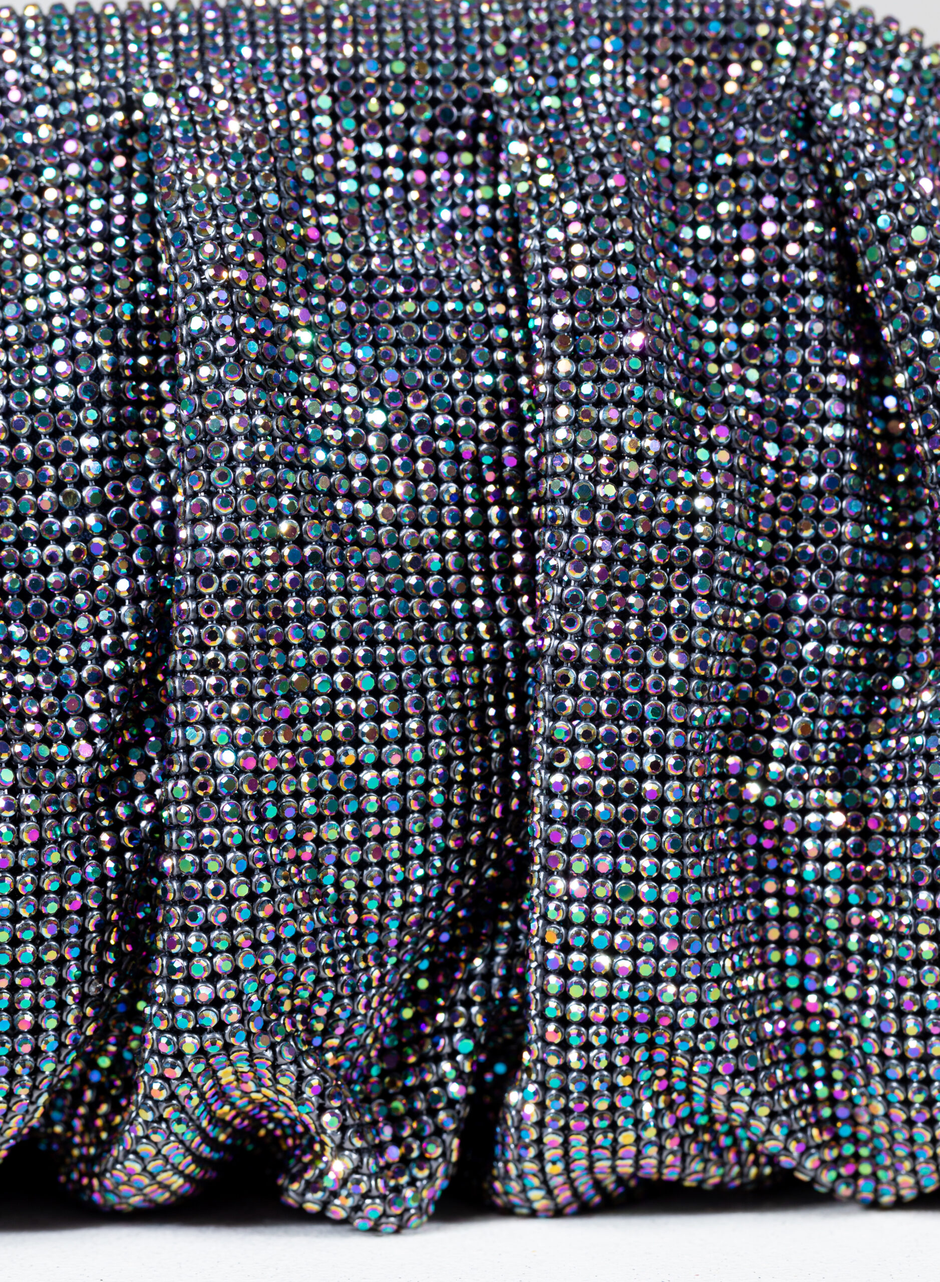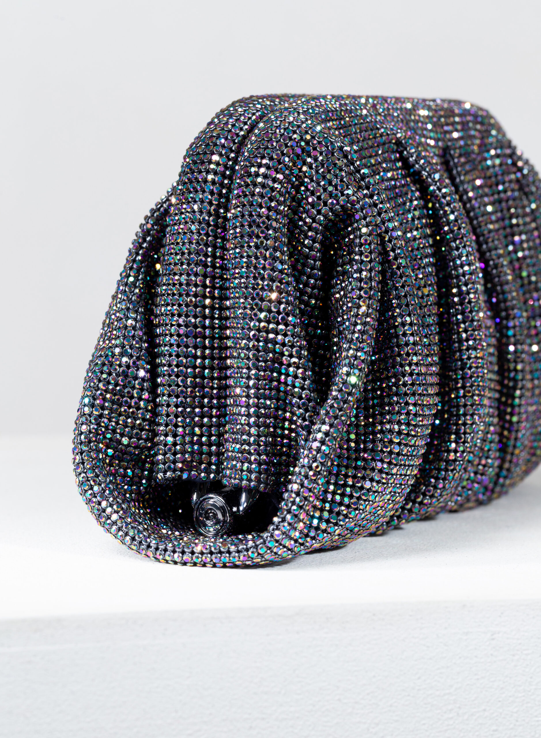 Accolgo l’amore che mi attraversa come un’onda che rotola, si frange sulla roccia e spuma. Come un acquazzone che fuma, ribolle e feconda la terra arsa. Come un profumo che sale dal mare, spande e satura l’aria d’intorno. Così il mio corpo rinasce in Venere. Questa pochette è un omaggio alla dea dell’Amore e della Bellezza e al magico momento in cui ogni donna, che ama ed è riamata, si trasforma. Da mortale diventa dea in una perfetta personificazione di Venere. Dalle forme morbide e ondulate, Venus è realizzata con una rete di scintillanti cristalli cucita a mano con la…
