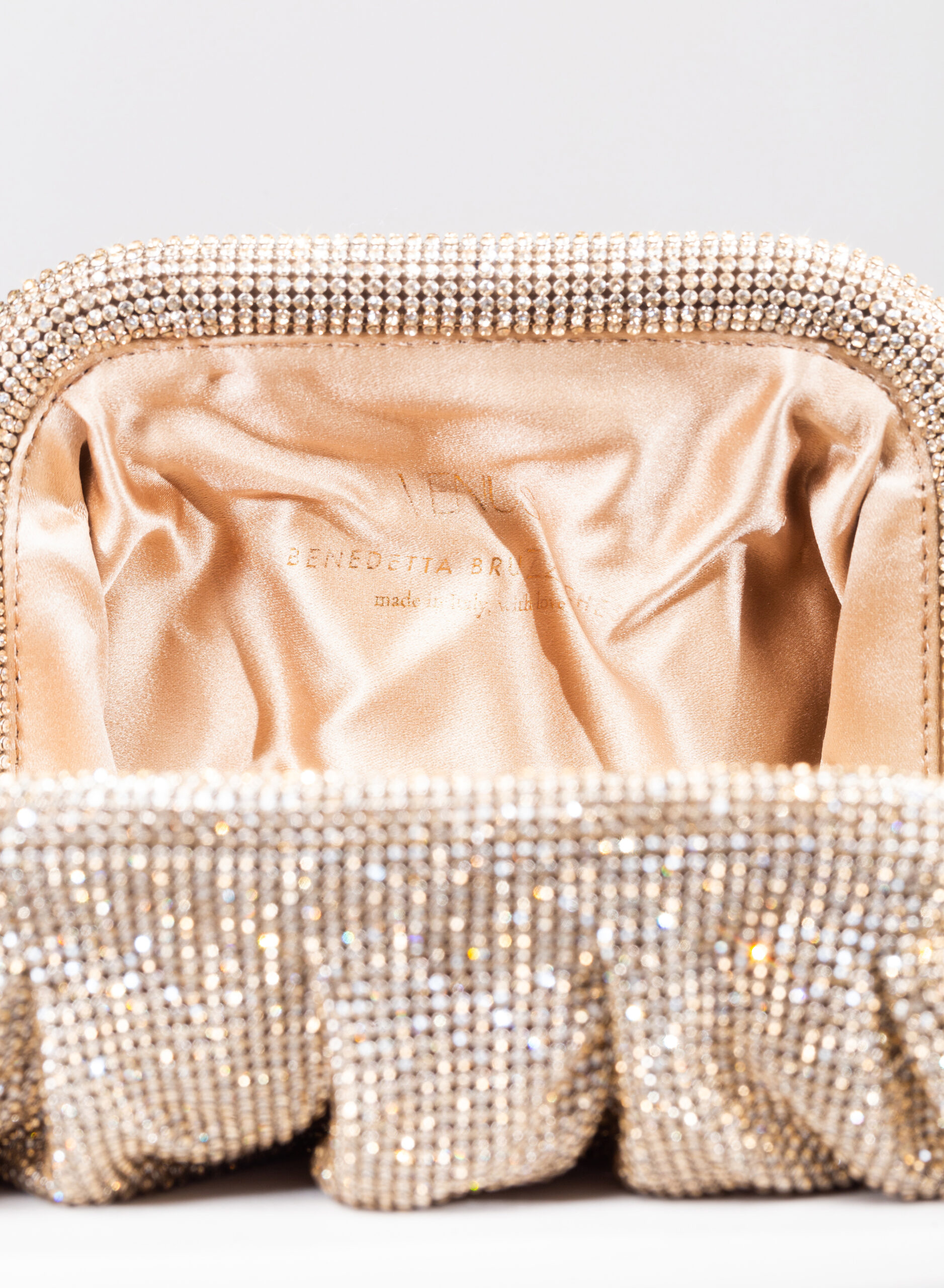I welcome the love that flows through me like a wave that rolls, breaks on the rock and foams. Like a shower that smokes, boils and fertilizes the burning earth. Like a perfume that rises from the sea, it spreads and saturates the air around. So my body is reborn on Venus. This clutch is a tribute to the goddess of Love and Beauty and the magical moment in which every woman, who loves and is loved, is transformed. From mortal becomes goddess in a perfect personification of Venus. With soft and wavy shapes, Venus is made with a network…