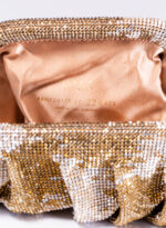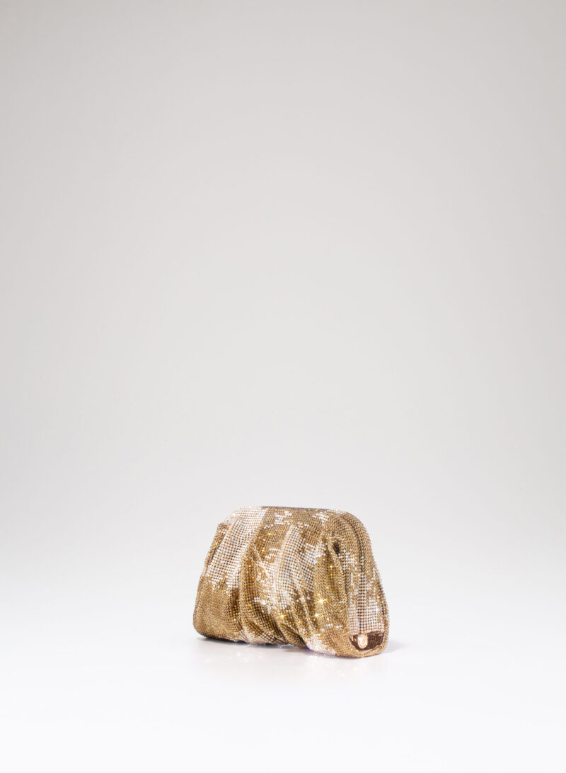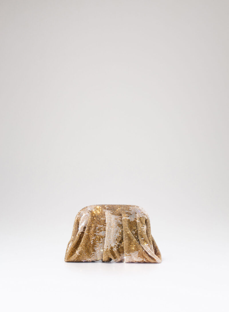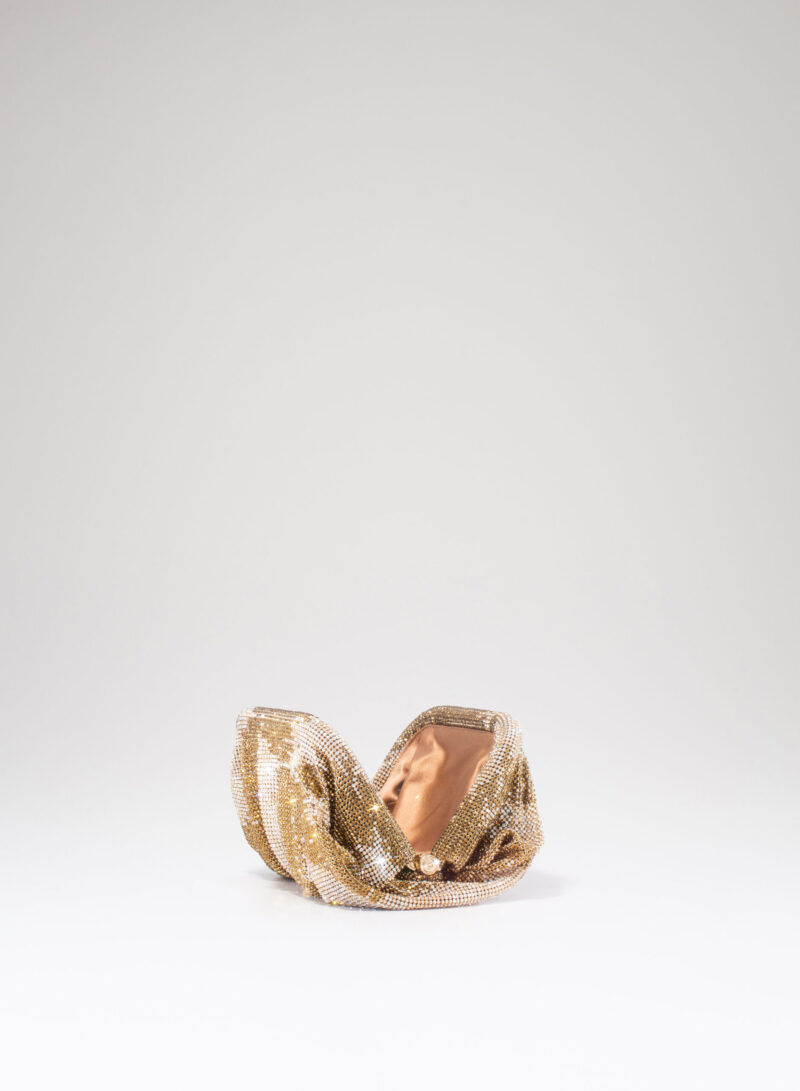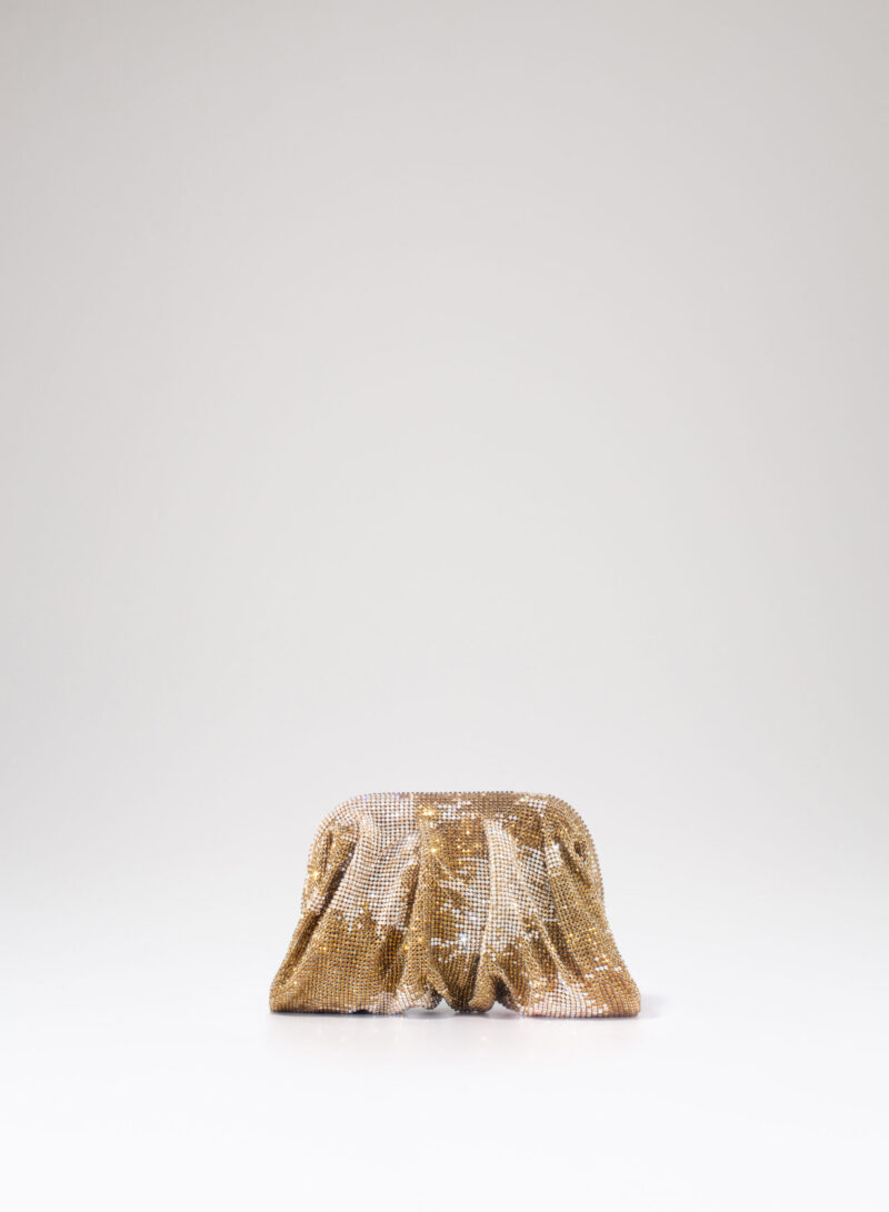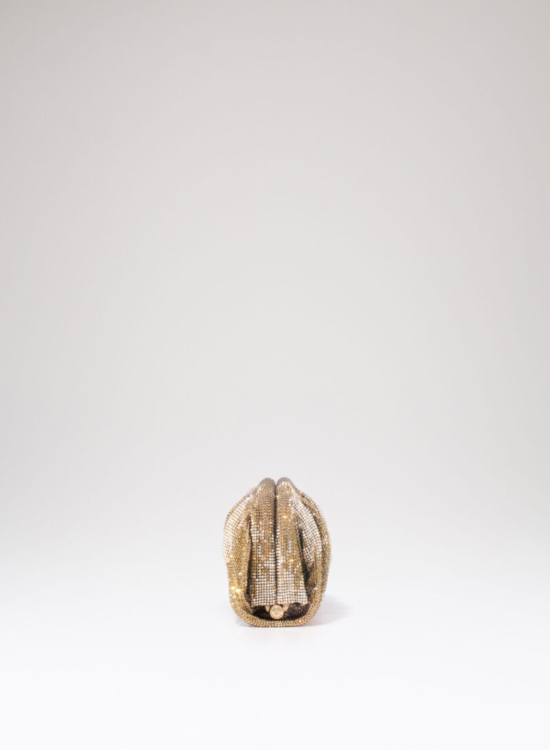 Dalle forme morbide e ondulate, Venus è realizzata con una rete di scintillanti cristalli cucita a mano con la stessa attenzione che si dedicherebbe a un gioiello. Al suo interno, una pochette in raso di seta è pronta ad accogliere il necessario per una serata fuori.