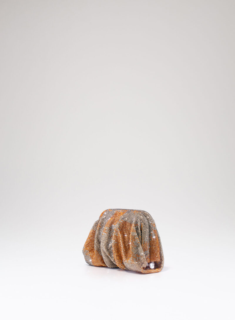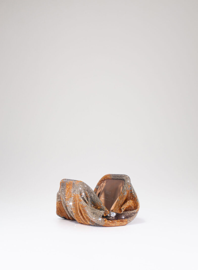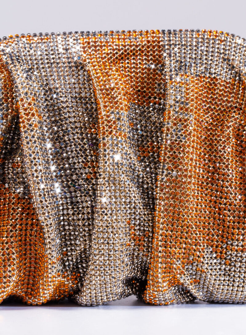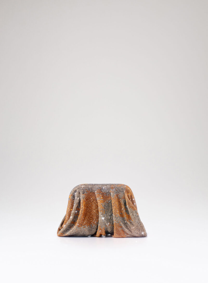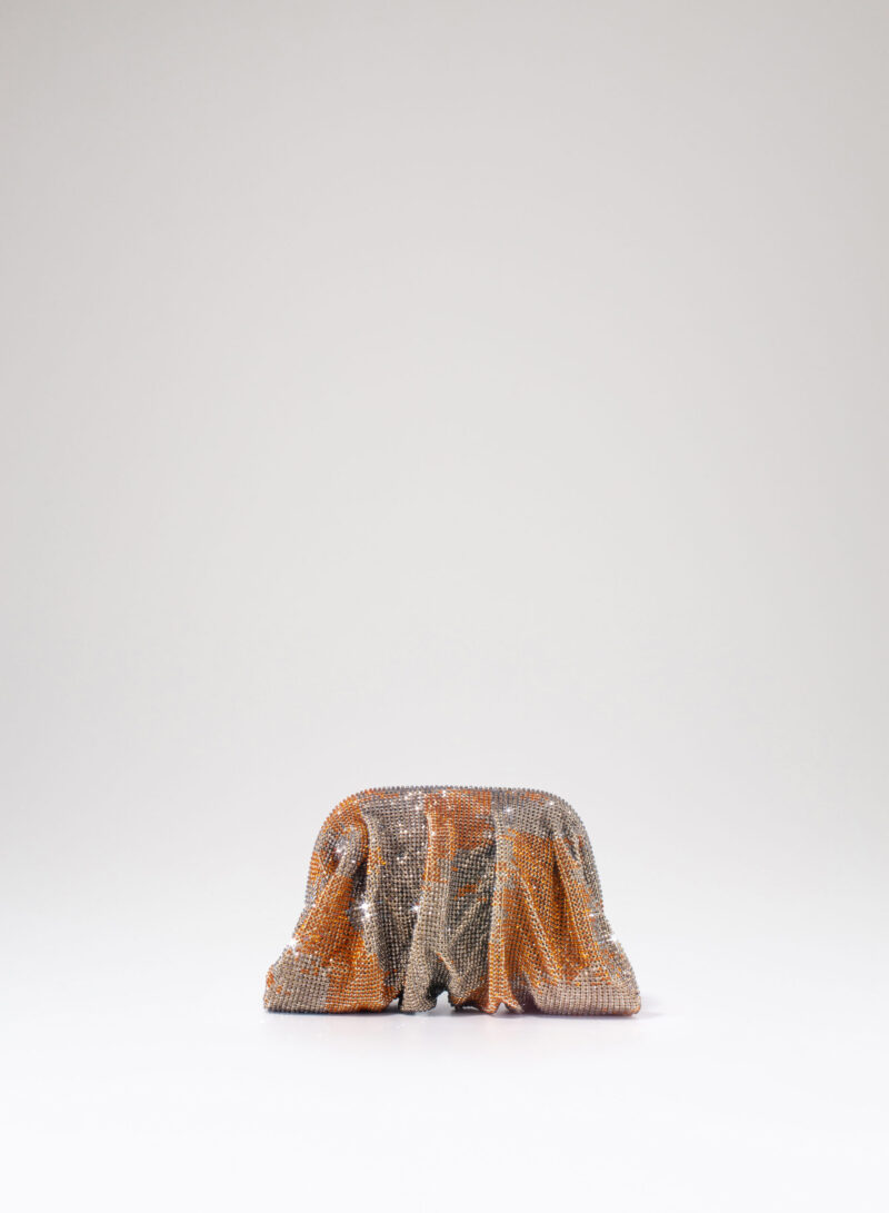 Dalle forme morbide e ondulate, Venus è realizzata con una rete di scintillanti cristalli cucita a mano con la stessa attenzione che si dedicherebbe a un gioiello. Al suo interno, una pochette in raso di seta è pronta ad accogliere il necessario per una serata fuori.
