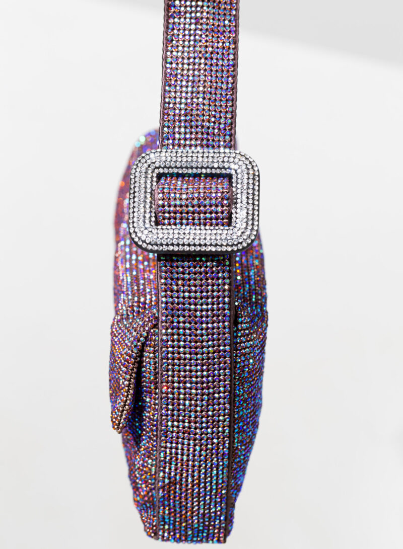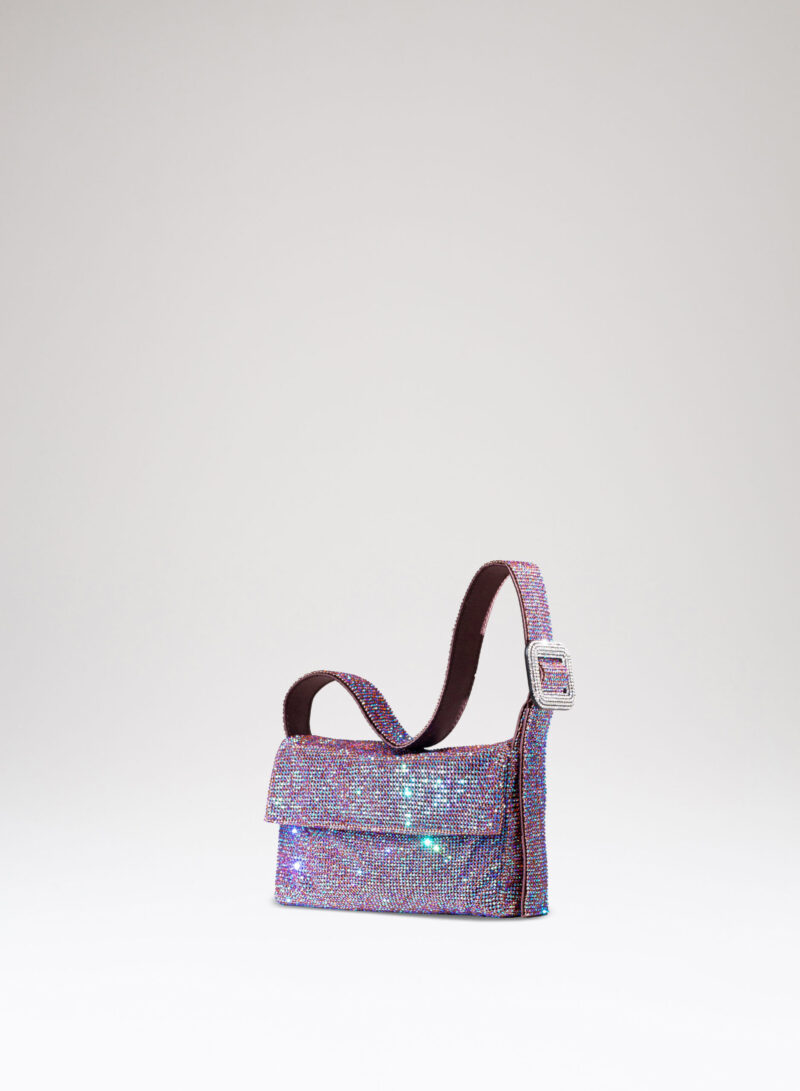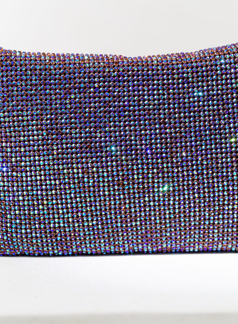 Ama essere abbracciata stretta e sa ricambiare trepidante con la morbidezza di un corpo in raso di seta cucito a mano. Se la porti fuori e la tieni sottobraccio, che sia per un chiaro di luna o solo per una lucciola, con il suo vestito di rete di cristalli sa inondarti gentilmente dei suoi tremolanti riflessi: è il suo modo di arrossire.