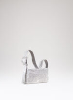 Ama essere abbracciata stretta e sa ricambiare trepidante con la morbidezza di un corpo in raso di seta cucito a mano. Se la porti fuori e la tieni sottobraccio, che sia per un chiaro di luna o solo per una lucciola, con il suo vestito di rete di cristalli sa inondarti gentilmente dei suoi tremolanti riflessi: è il suo modo di arrossire.