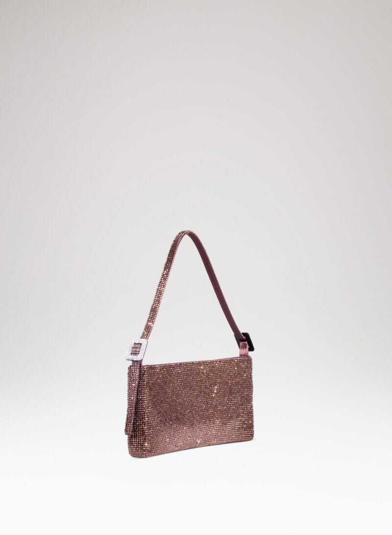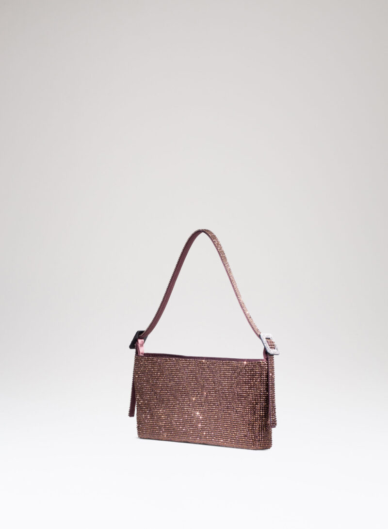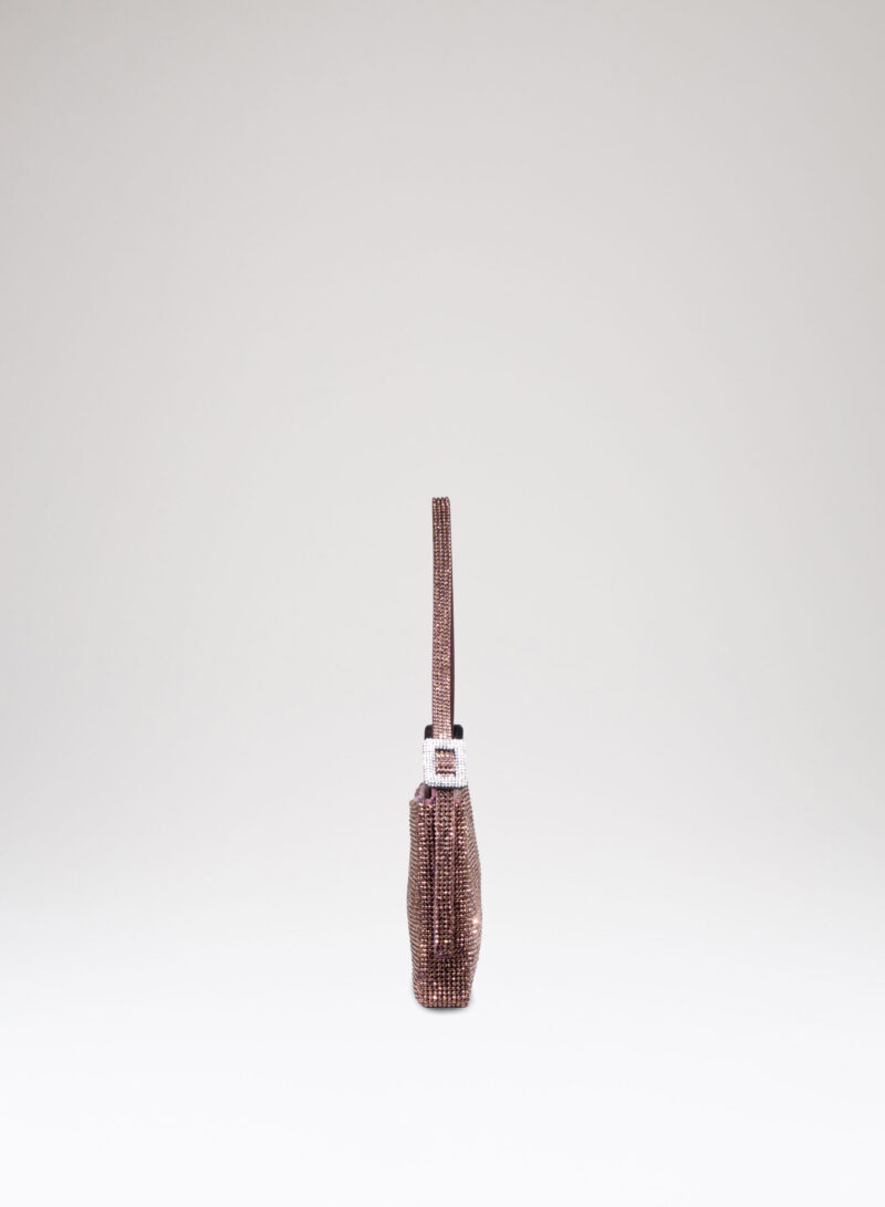 Nata per custodire soltanto ciò che davvero è importante, è una mini pochette realizzata con una morbida rete di cristalli foderata in raso di seta, interamente cucita a mano.