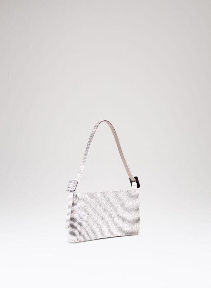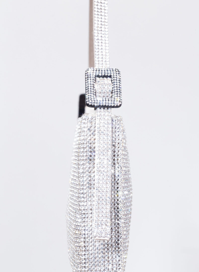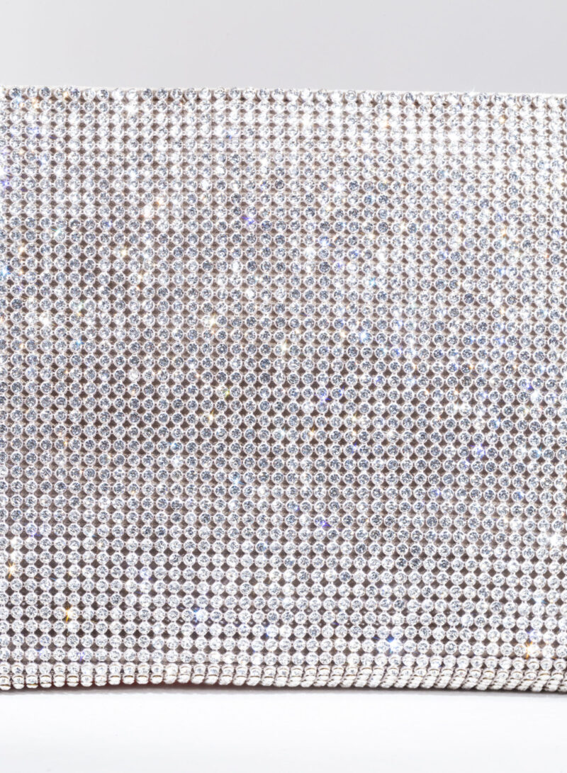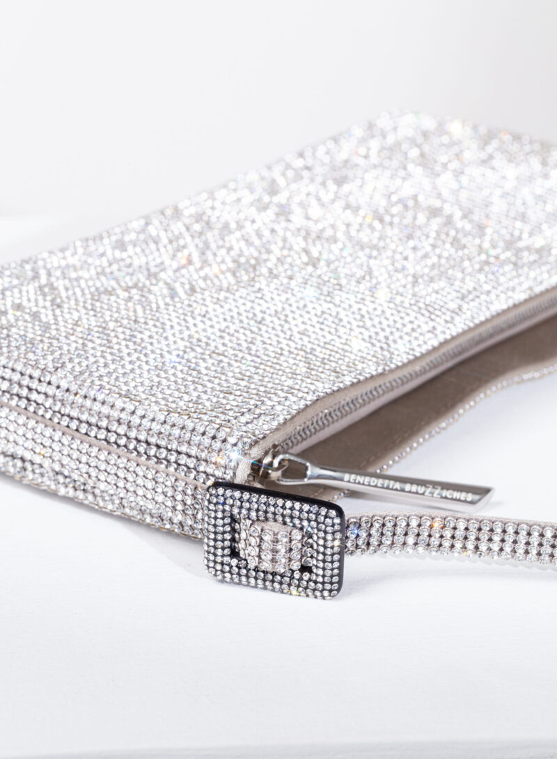 Nata per custodire soltanto ciò che davvero è importante, è una mini pochette realizzata con una morbida rete di cristalli foderata in raso di seta, interamente cucita a mano.