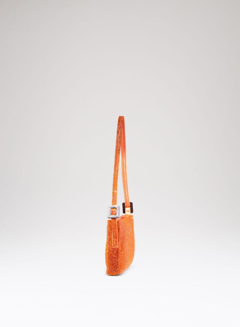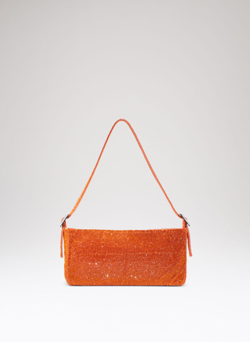 Nata per custodire soltanto ciò che davvero è importante, è una mini pochette realizzata con una morbida rete di cristalli foderata in denim, interamente cucita a mano.