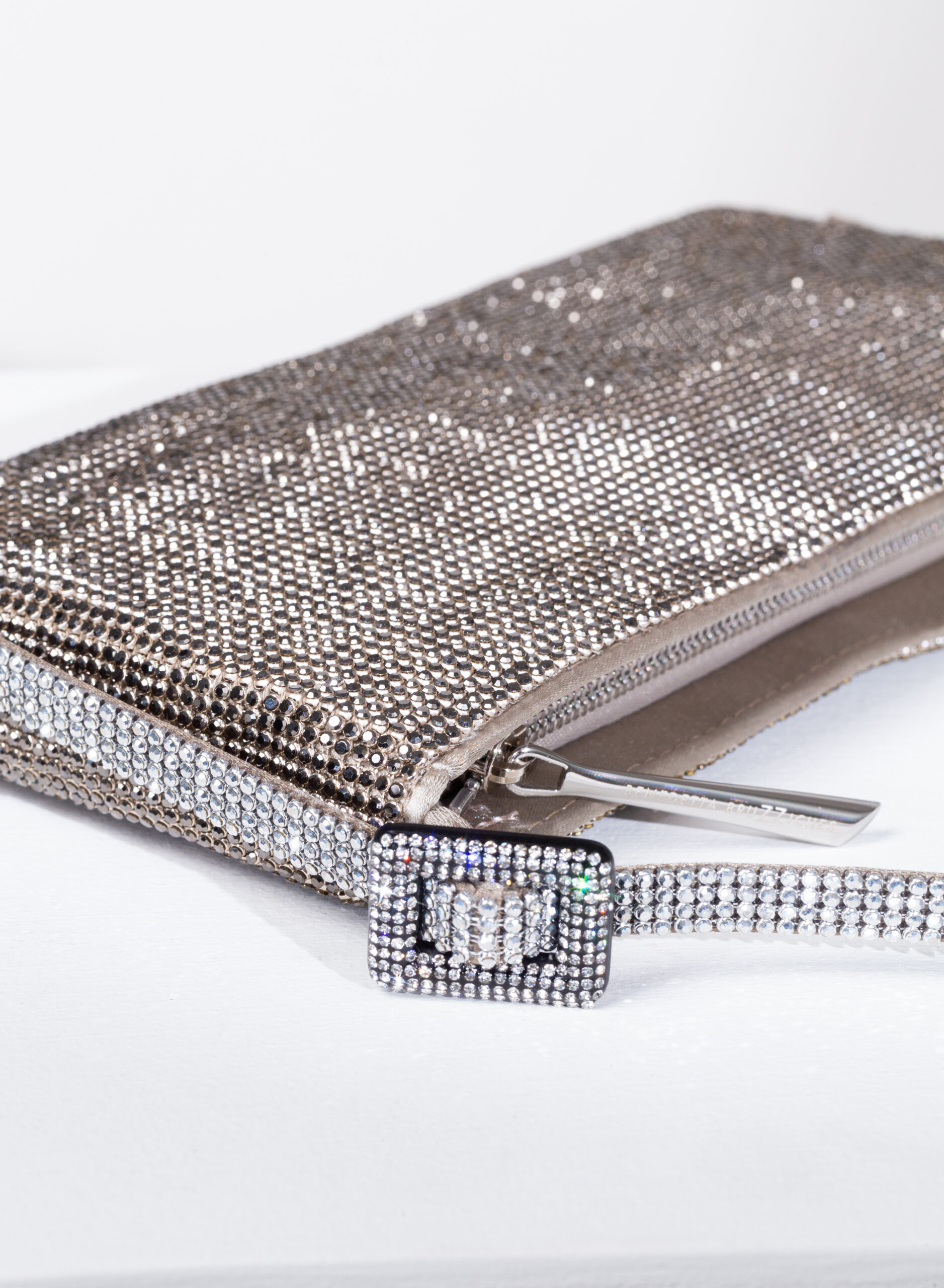 Have you ever waited for an important answer, one that could change your life or even just your day? Well, finding a real friend is being answered that question “Everything went well!”. Your Best Friend doesn’t care if you’re an aristocrat or an ordinary citizen, if you live in a villa or a studio, if you drive a luxury car or a utility car. How many people can you say that for? Designed to keep only what is really important, it is a mini clutch made with a soft net of crystals lined with denim, entirely hand-sewn.