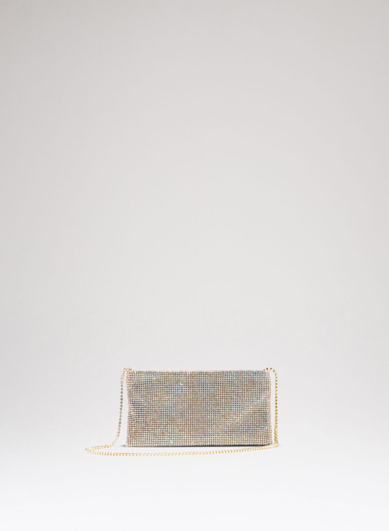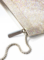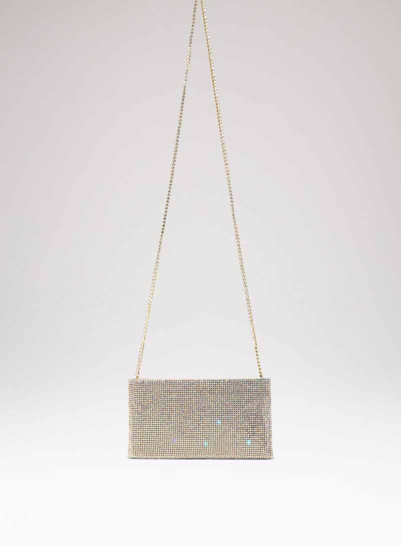 Nata per custodire soltanto ciò che davvero è importante, è una mini pochette realizzata con una morbida rete di cristalli foderata in raso di seta organica, interamente cucita a mano. Un’elegante tracolla di cristalli consente di indossarla anche a spalla.