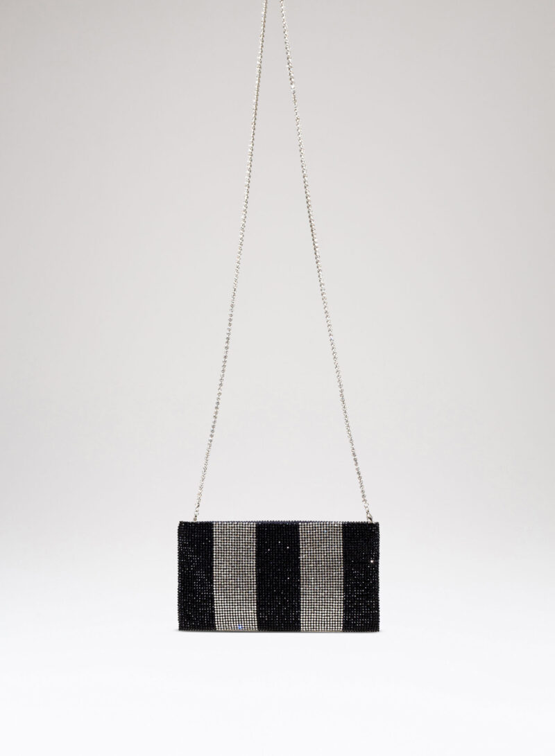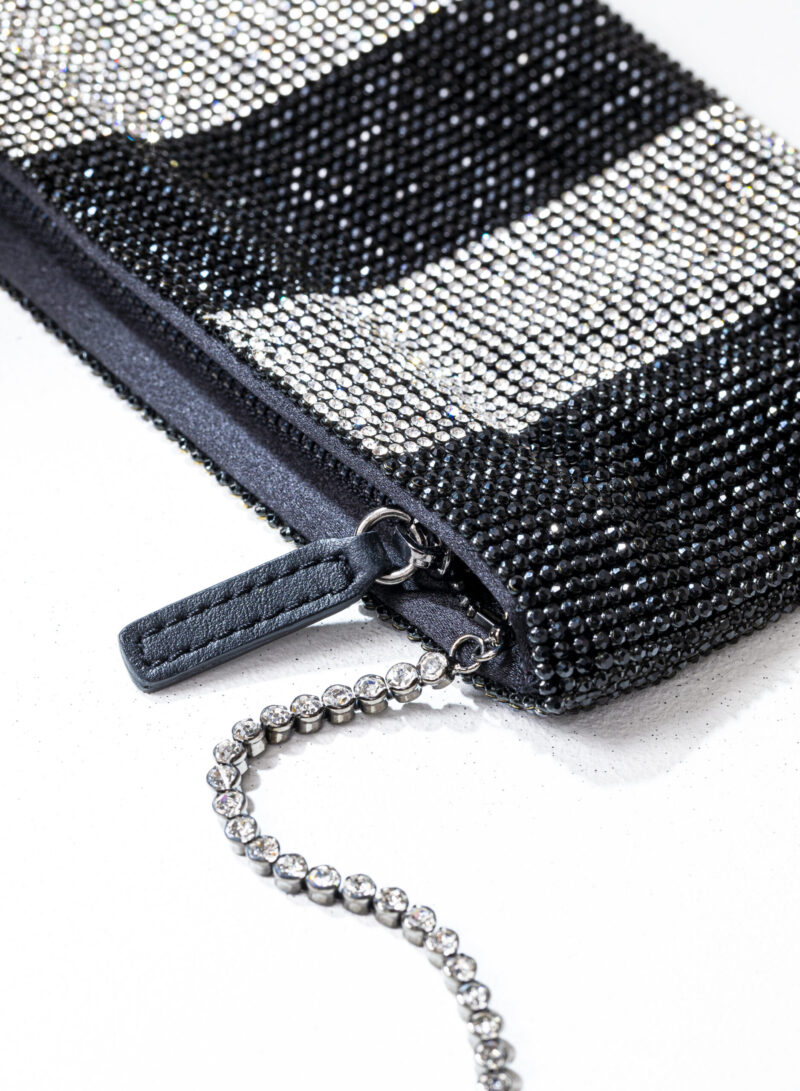 Nata per custodire soltanto ciò che davvero è importante, è una mini pochette realizzata con una morbida rete di cristalli foderata in raso di seta organica, interamente cucita a mano. Un’elegante tracolla di cristalli consente di indossarla anche a spalla.