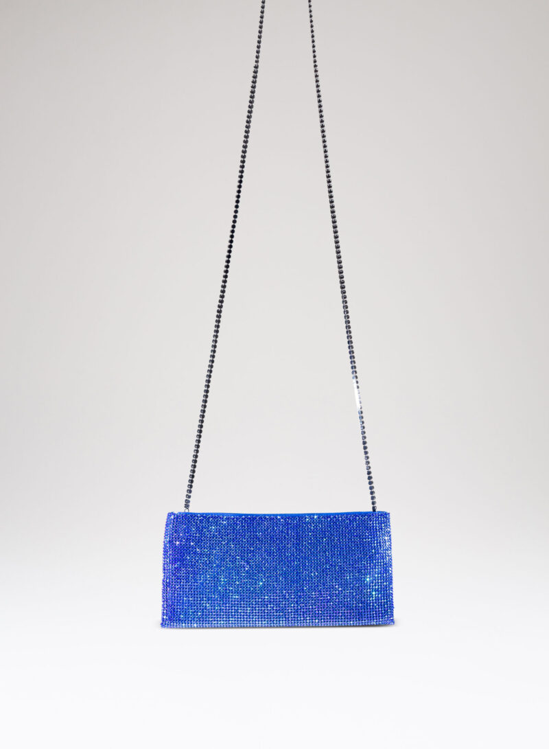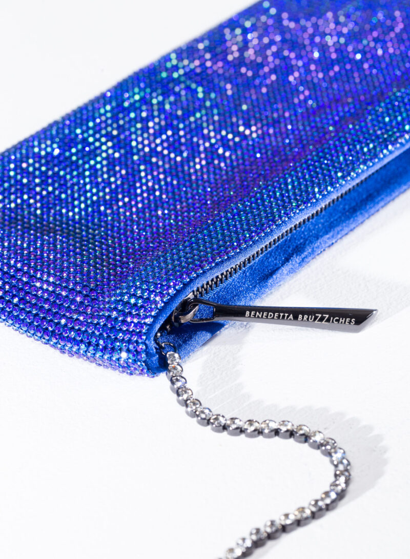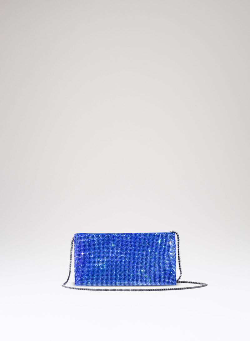 Nata per custodire soltanto ciò che davvero è importante, è una mini pochette realizzata con una morbida rete di cristalli foderata in raso di seta, interamente cucita a mano. Un’elegante tracolla di cristalli consente di indossarla anche a spalla.