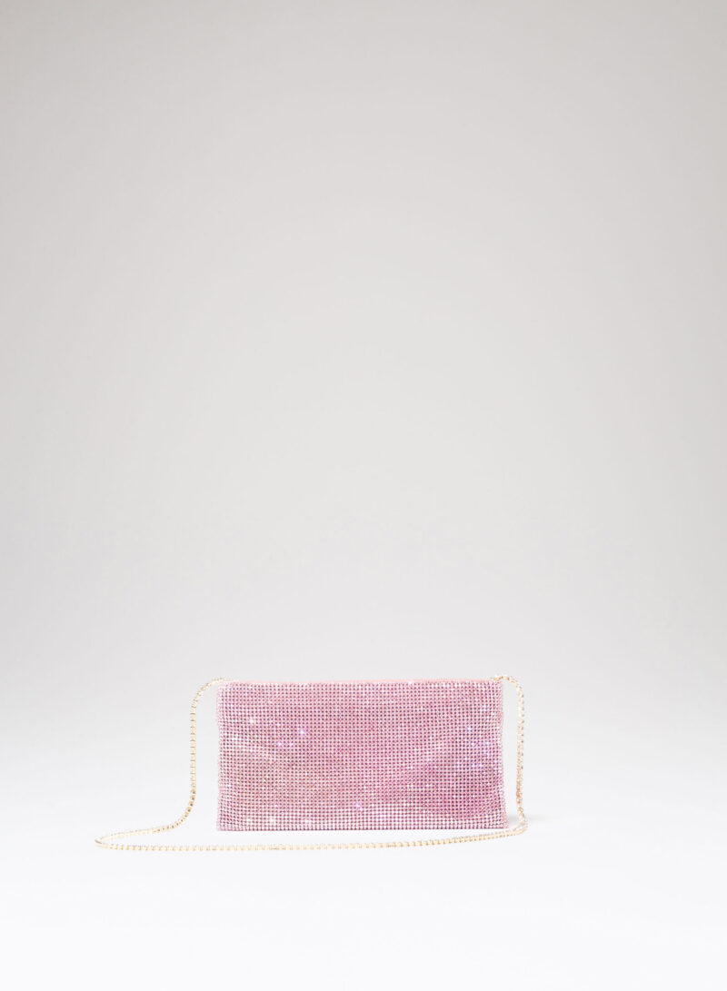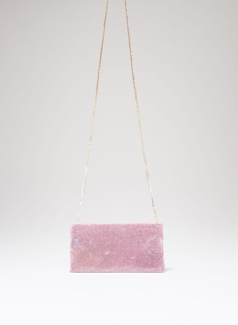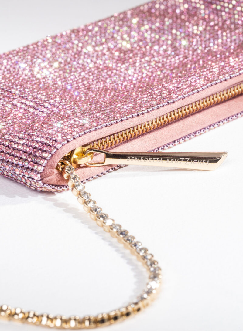 Nata per custodire soltanto ciò che davvero è importante, è una mini pochette realizzata con una morbida rete di cristalli foderata in raso di seta organica, interamente cucita a mano. Un’elegante tracolla di cristalli consente di indossarla anche a spalla.