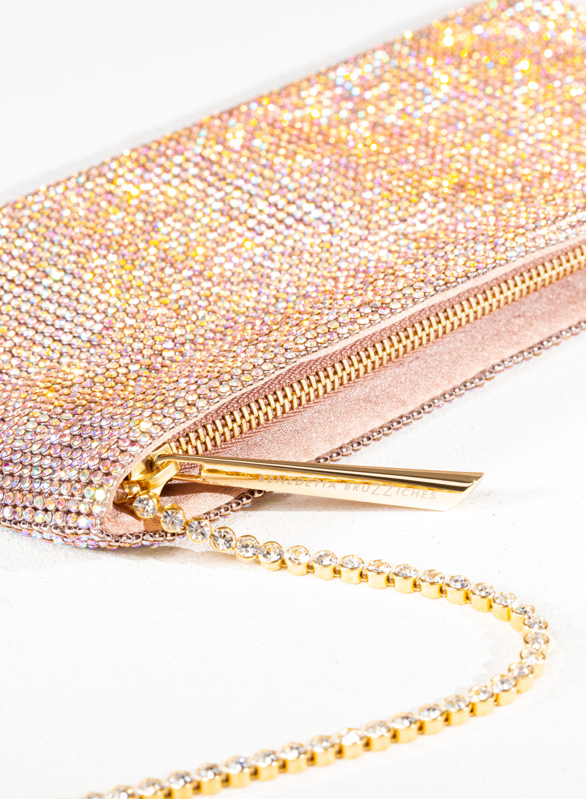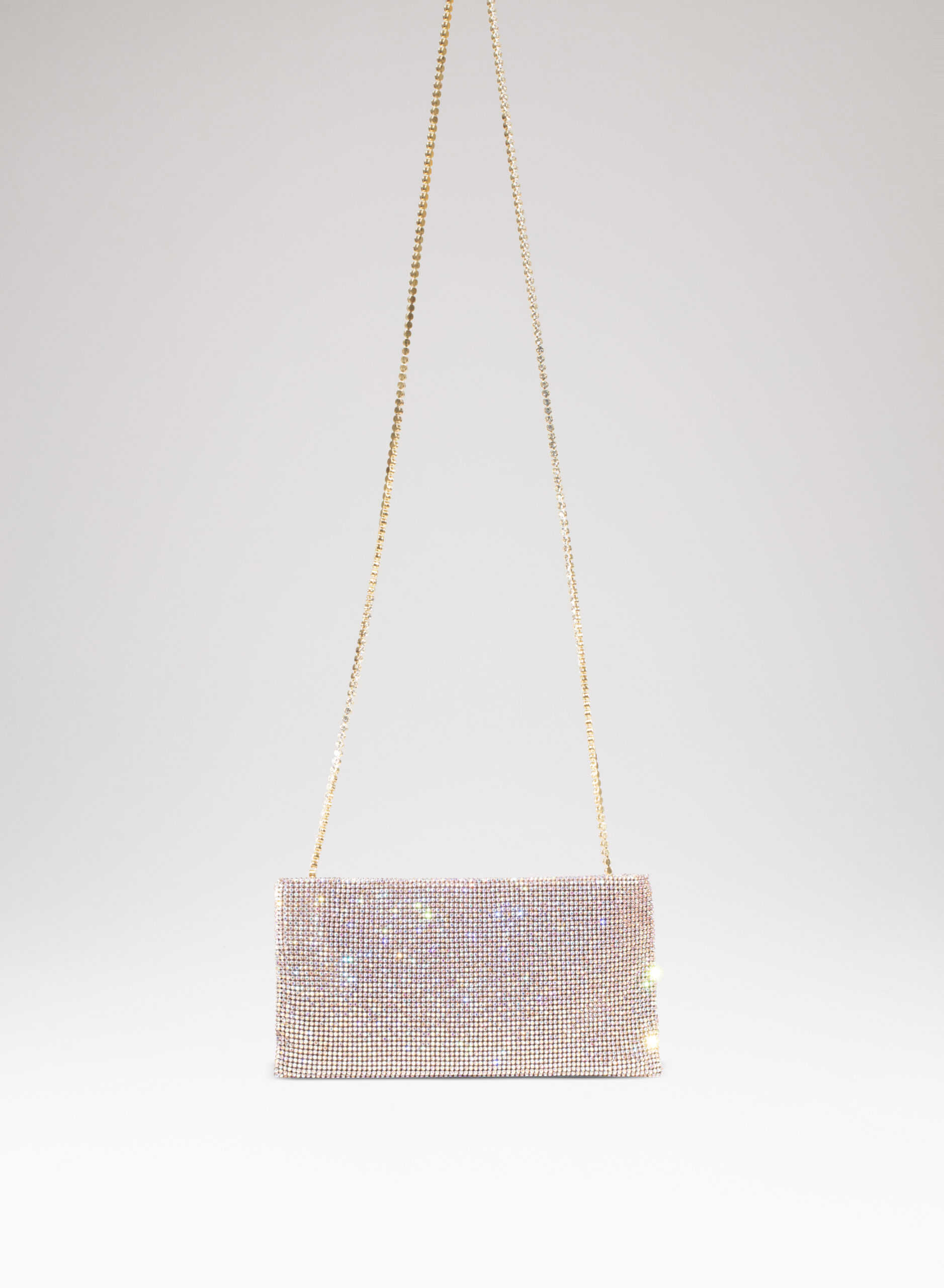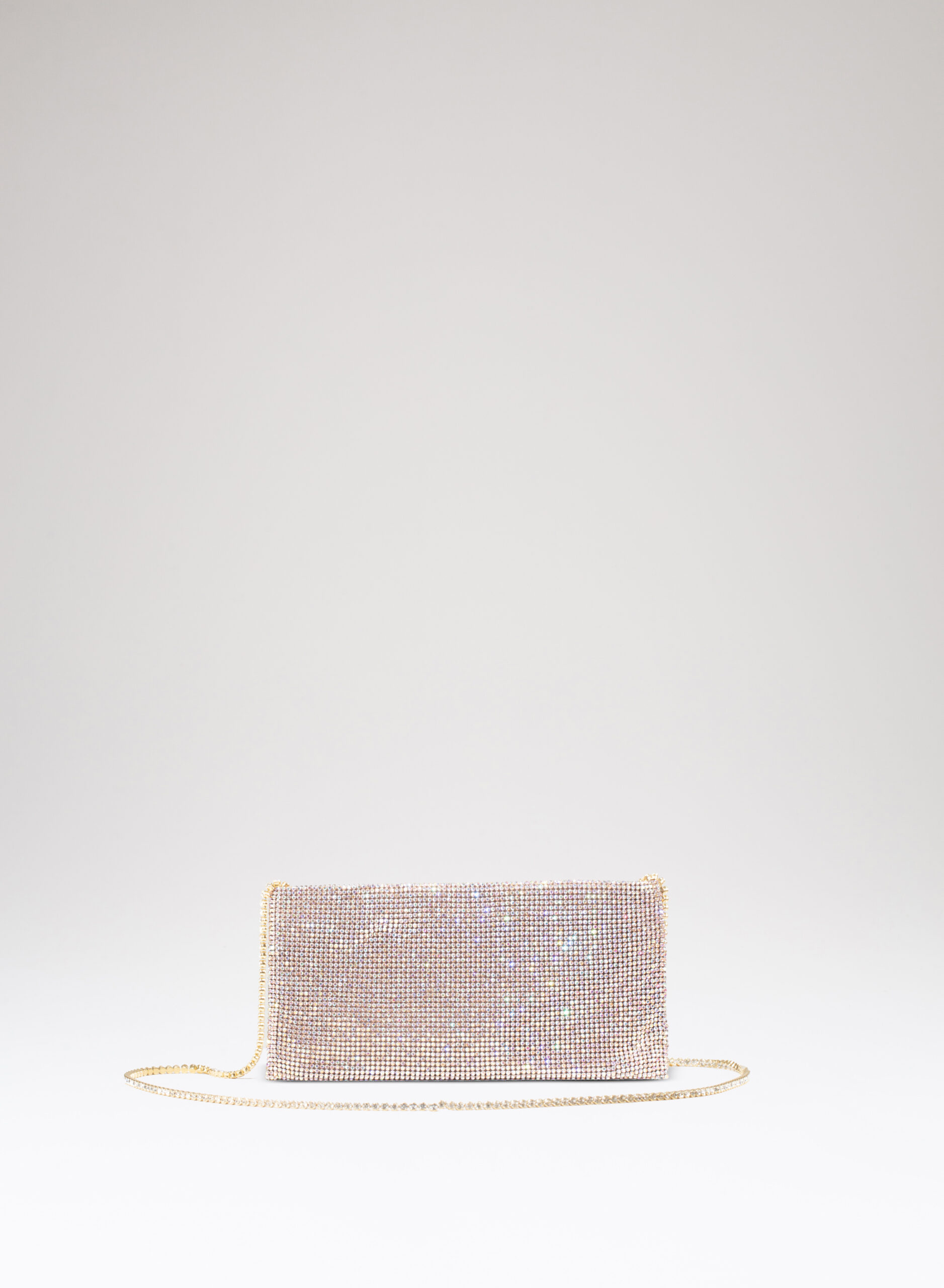 Have you ever waited for an important answer, one that could change your life or even just your day? Well, finding a real friend is being answered that question “Everything went well!”. Your Best Friend doesn’t care if you’re an aristocrat or an ordinary citizen, if you live in a villa or a studio, if you drive a luxury car or a utility car. How many people can you say that for? Designed to keep only what is really important, it is a mini clutch made with a soft net of crystals lined with denim, entirely hand-sewn. An elegant crystal…