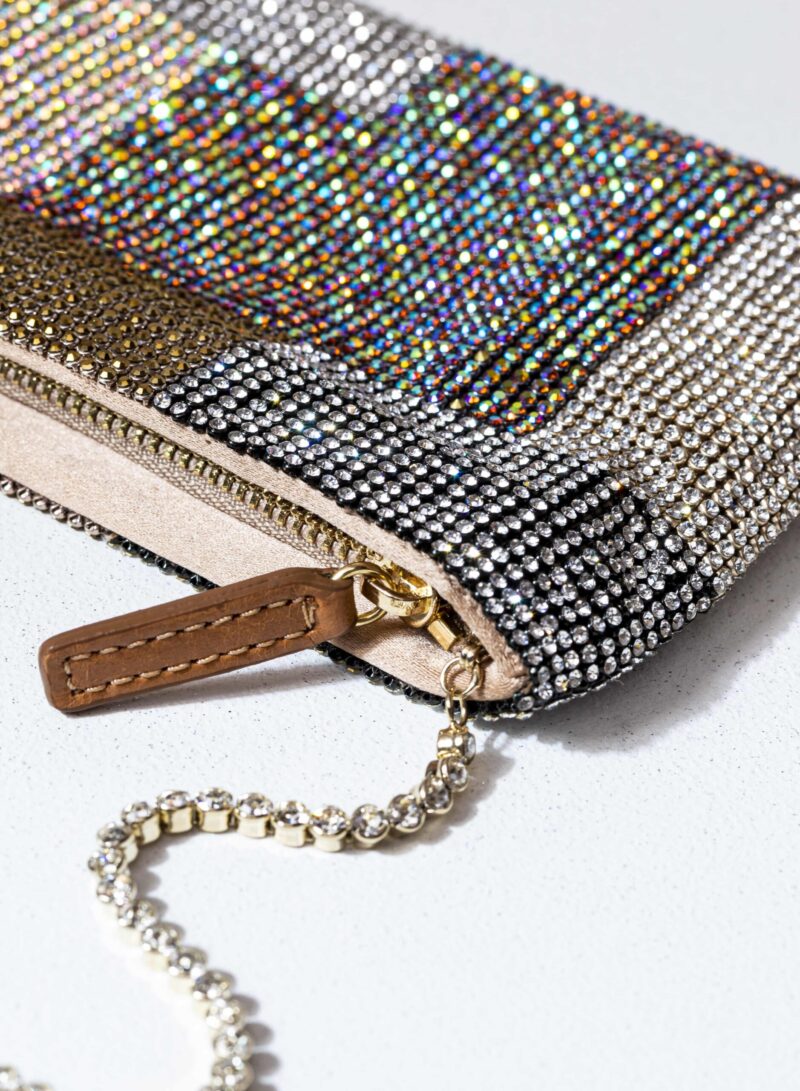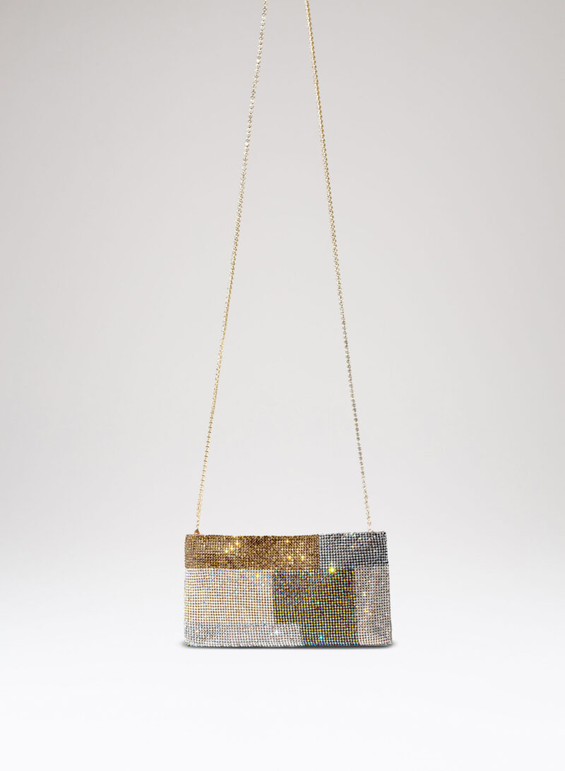 Nata per custodire soltanto ciò che davvero è importante, è una mini pochette realizzata con una morbida rete di cristalli foderata in raso di seta organica, interamente cucita a mano. Un’elegante tracolla di cristalli consente di indossarla anche a spalla.