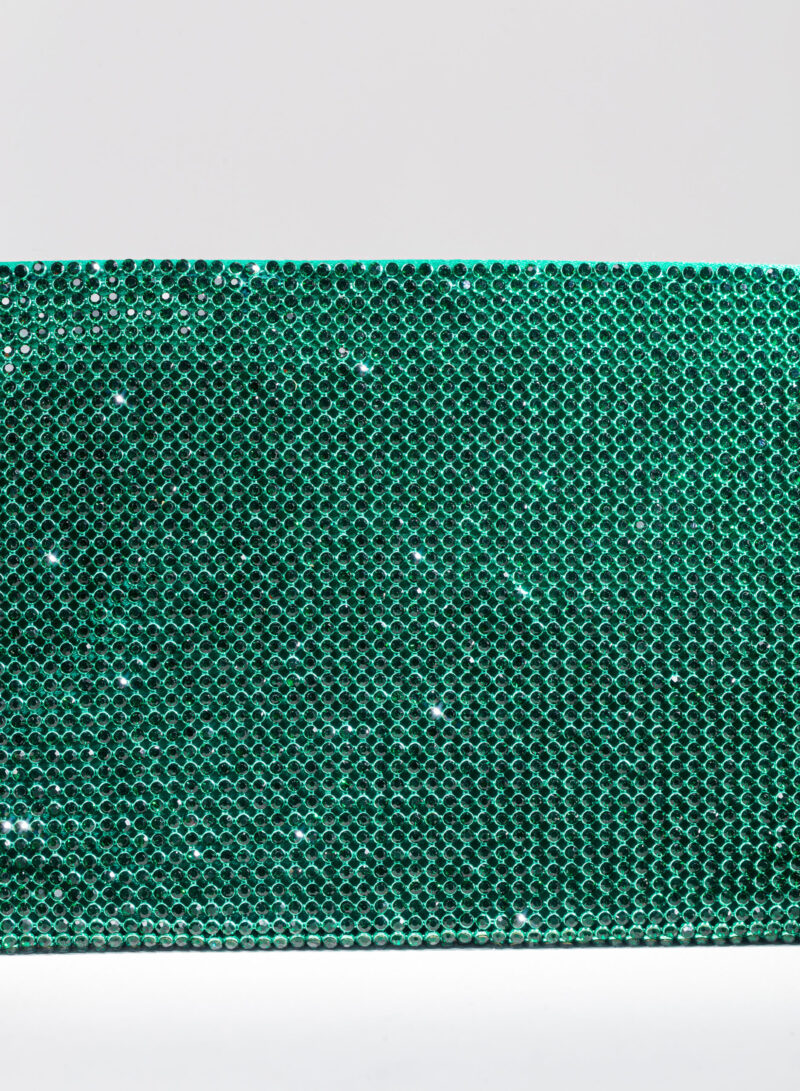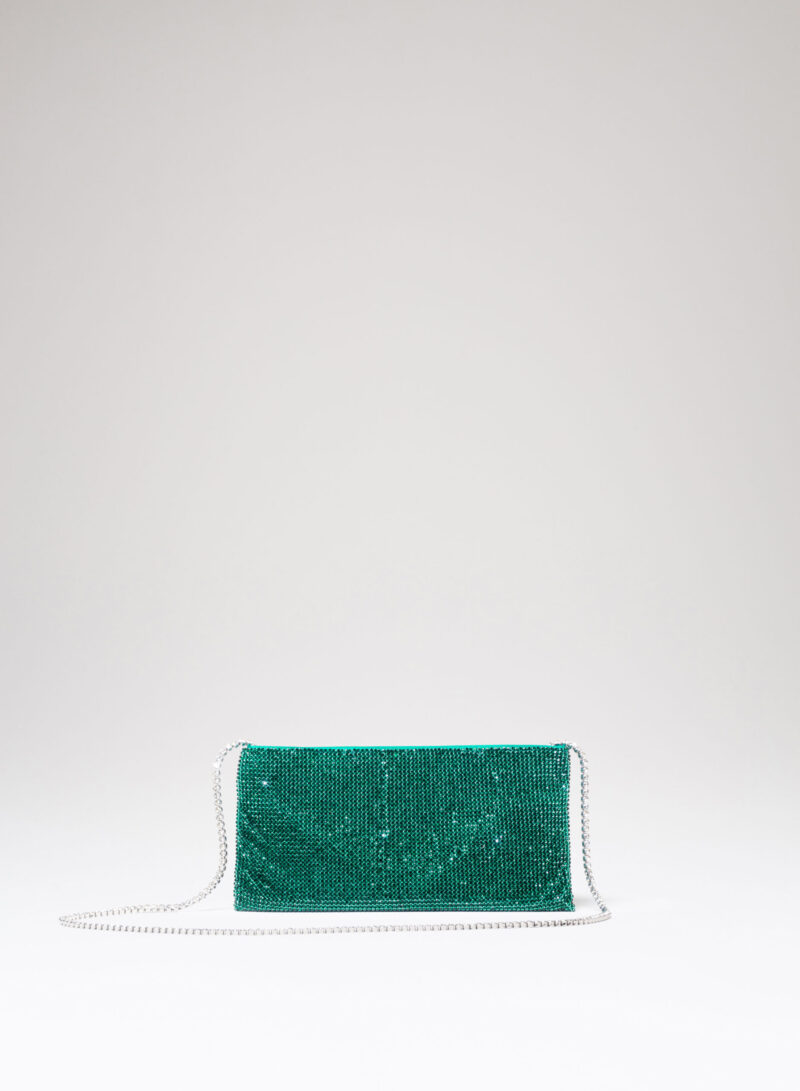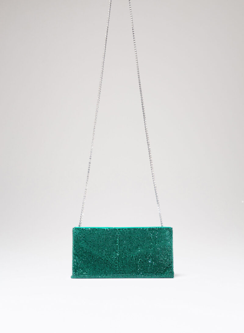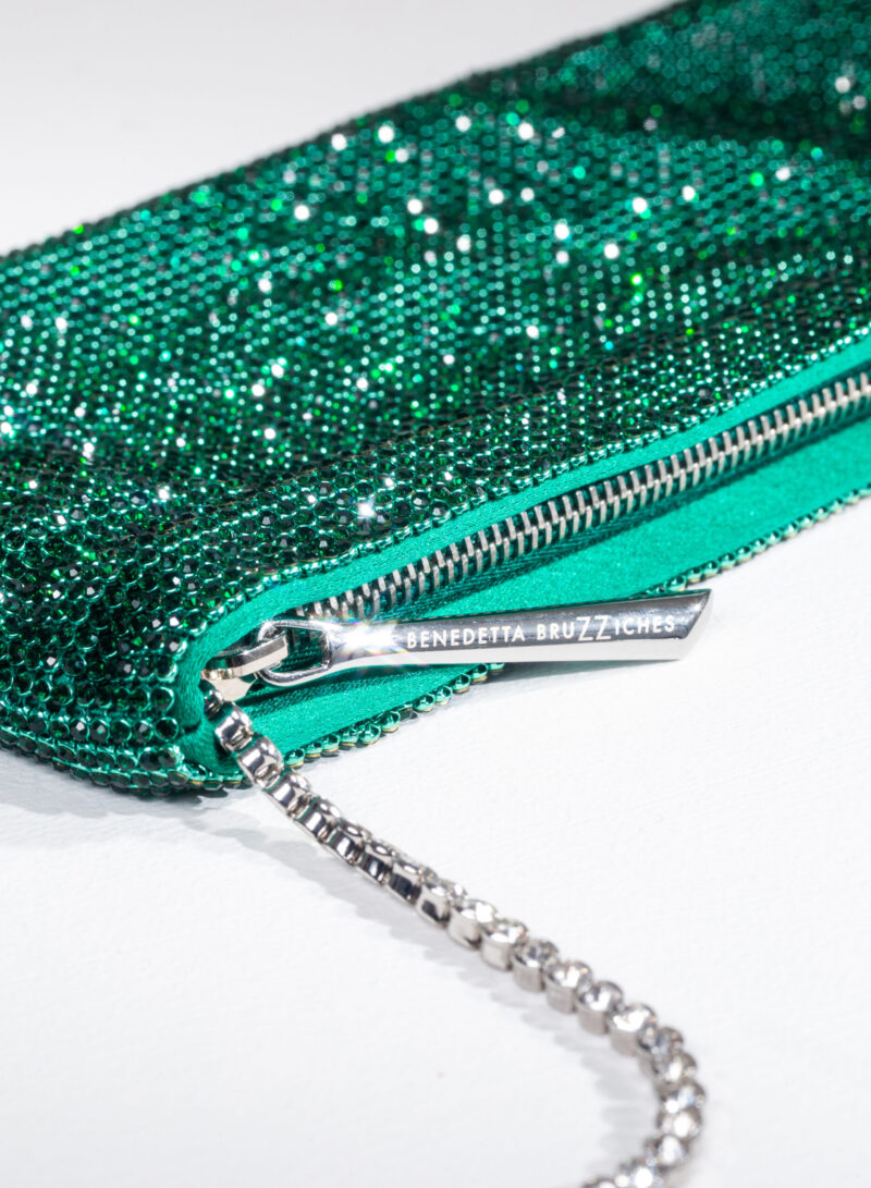 Nata per custodire soltanto ciò che davvero è importante, è una mini pochette realizzata con una morbida rete di cristalli foderata in raso di seta organica, interamente cucita a mano. Un’elegante tracolla di cristalli consente di indossarla anche a spalla.