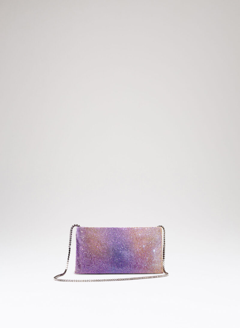 Nata per custodire soltanto ciò che davvero è importante, è una mini pochette realizzata con una morbida rete di cristalli foderata in raso di seta organica, interamente cucita a mano. Un’elegante tracolla di cristalli consente di indossarla anche a spalla.
