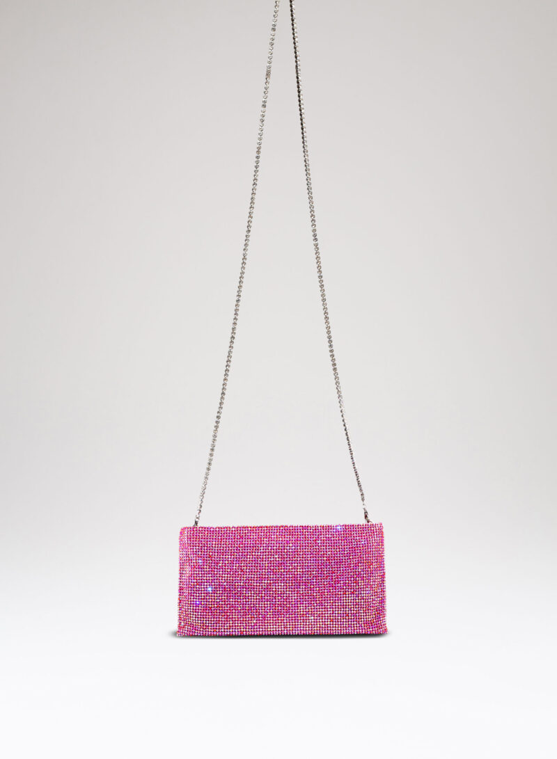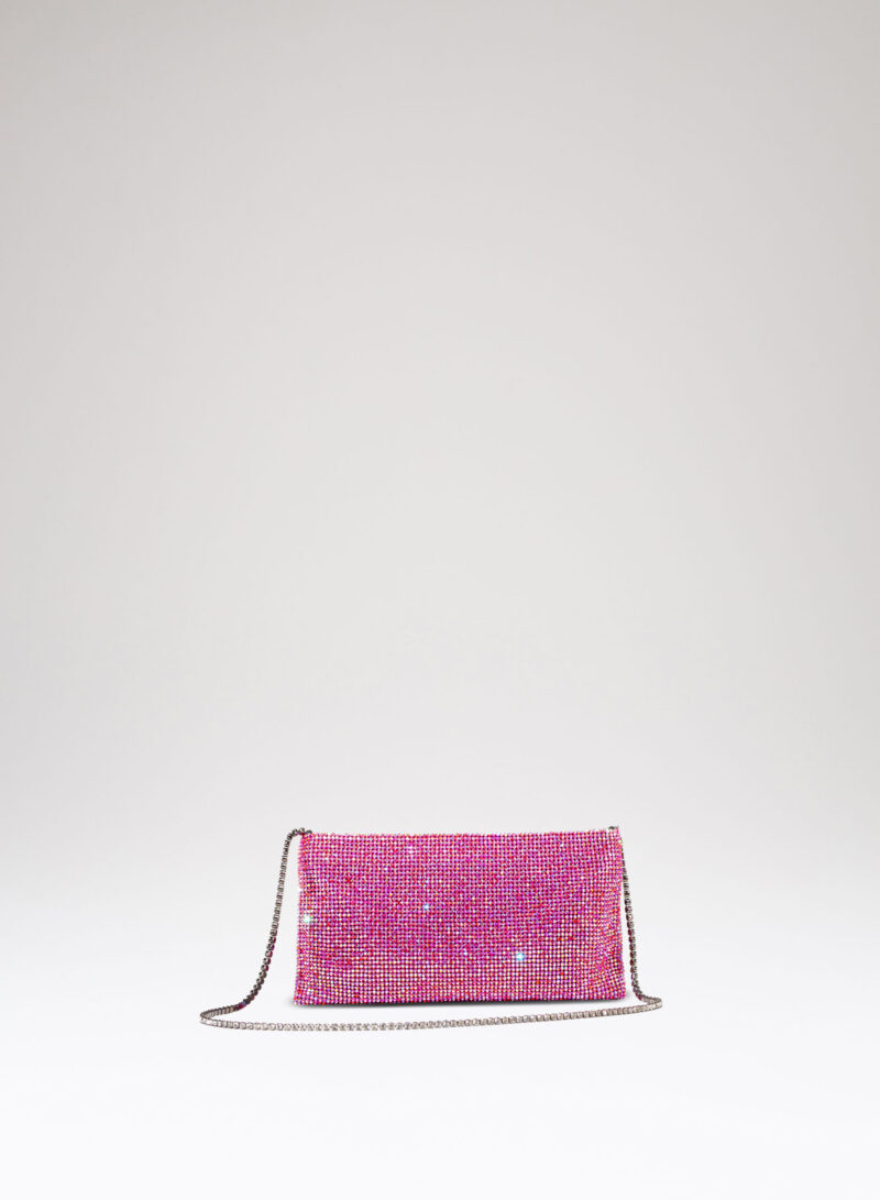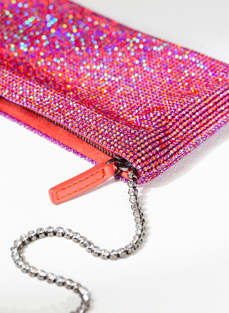 Nata per custodire soltanto ciò che davvero è importante, è una mini pochette realizzata con una morbida rete di cristalli foderata in raso di seta organica, interamente cucita a mano. Un’elegante tracolla di cristalli consente di indossarla anche a spalla.
